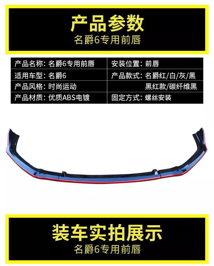 18 새로운 MG 6 수정 된 탄소 섬유 프론트 립 충돌 방지 고무 스트립 mg6 주변 스크래치 방지 스트립 앞 삽 테일 트림 스트립