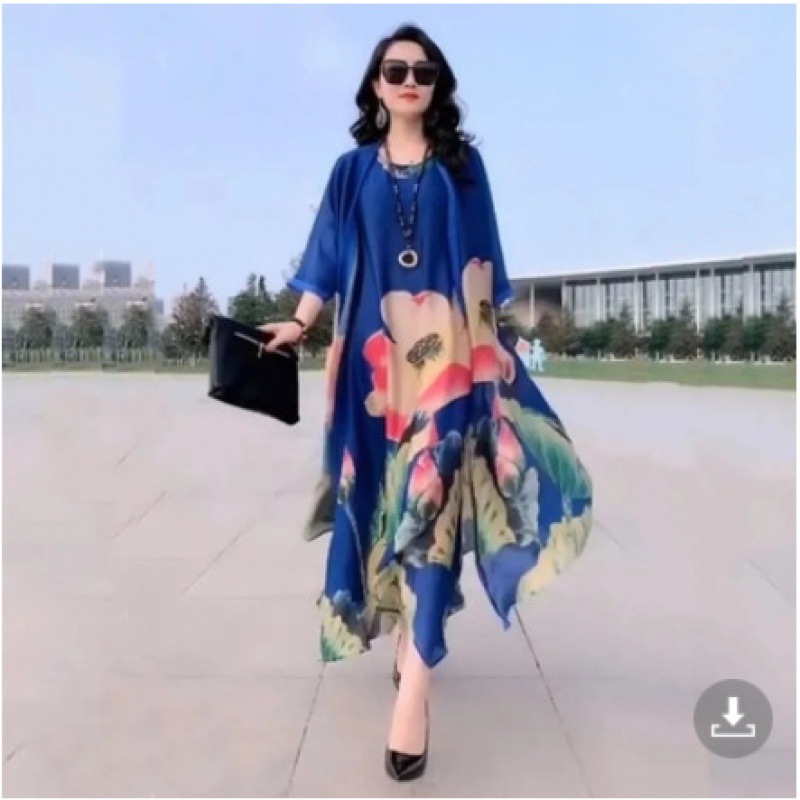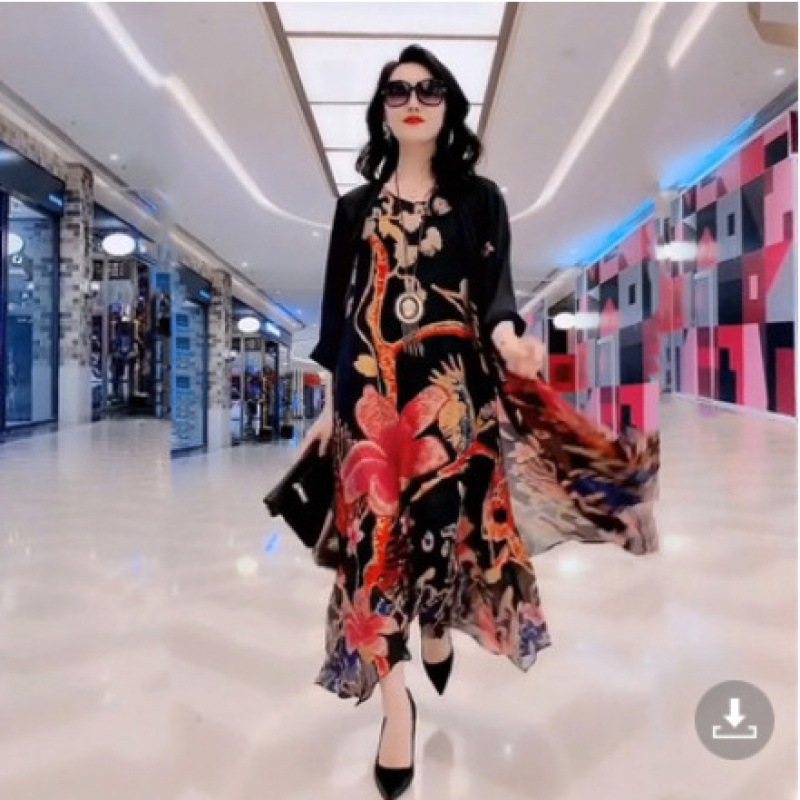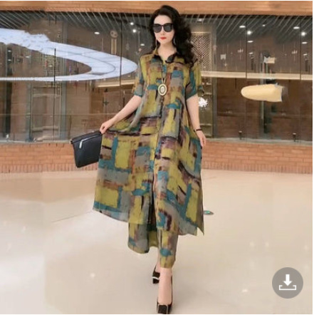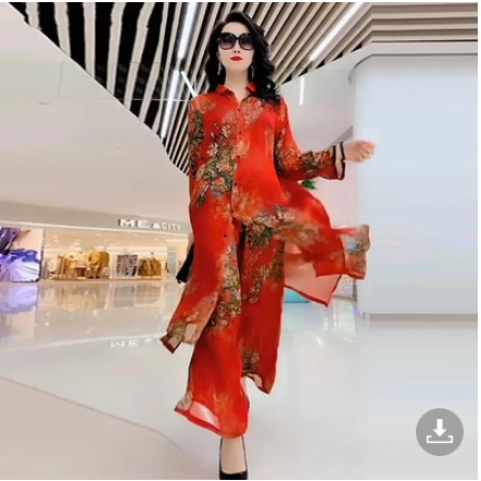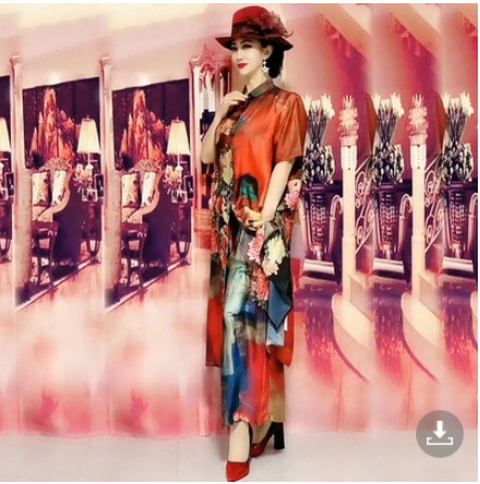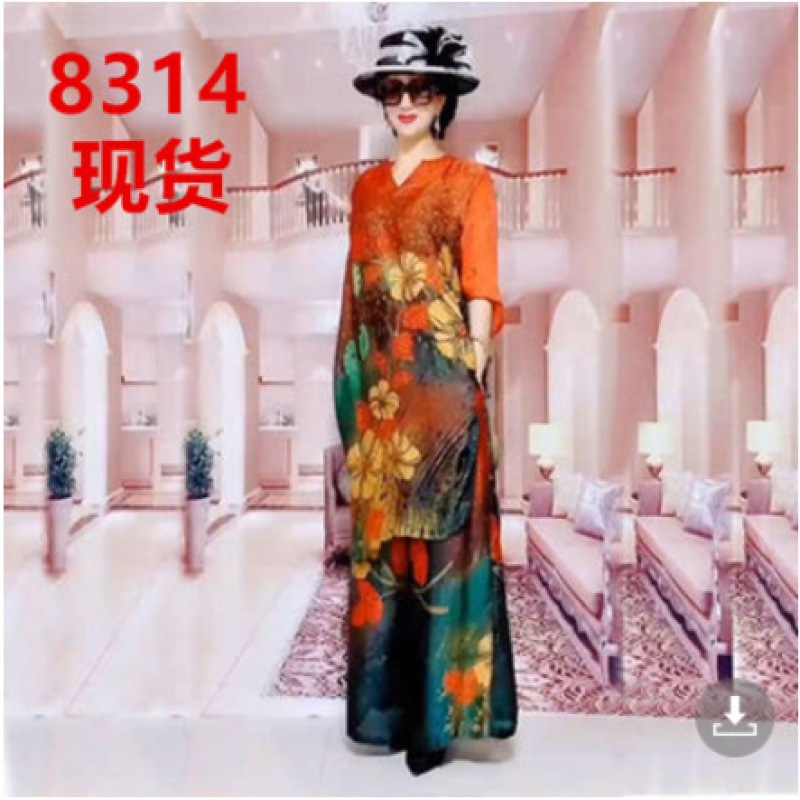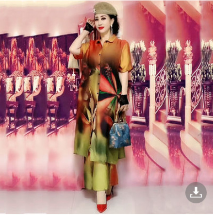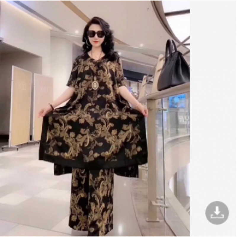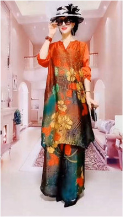 플러스 사이즈 패션 레이디 프린트 와이드 레그 팬츠 세트 여성용 2023 여름 새로운 웨스턴 스타일 우아한 슬림 투피스 세트스토어 가기