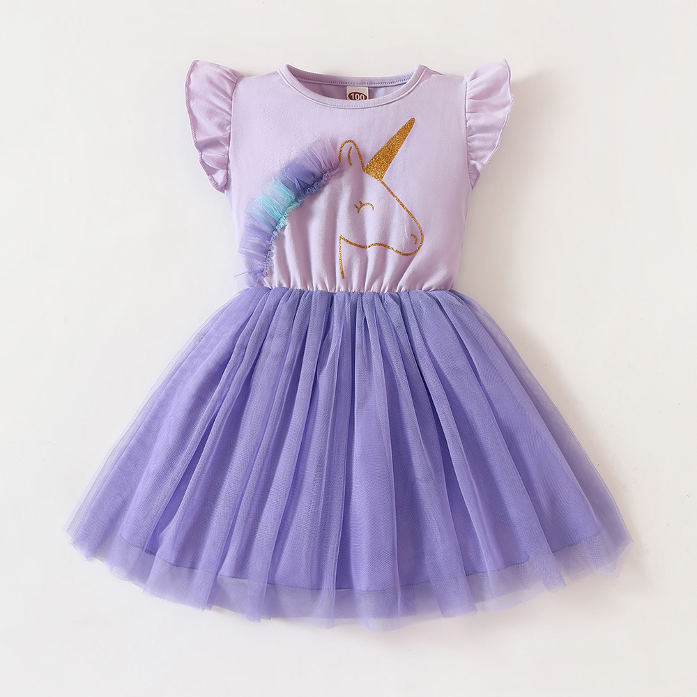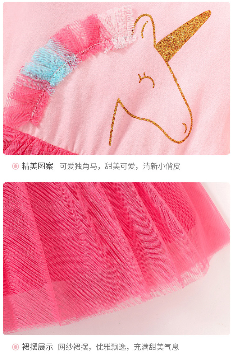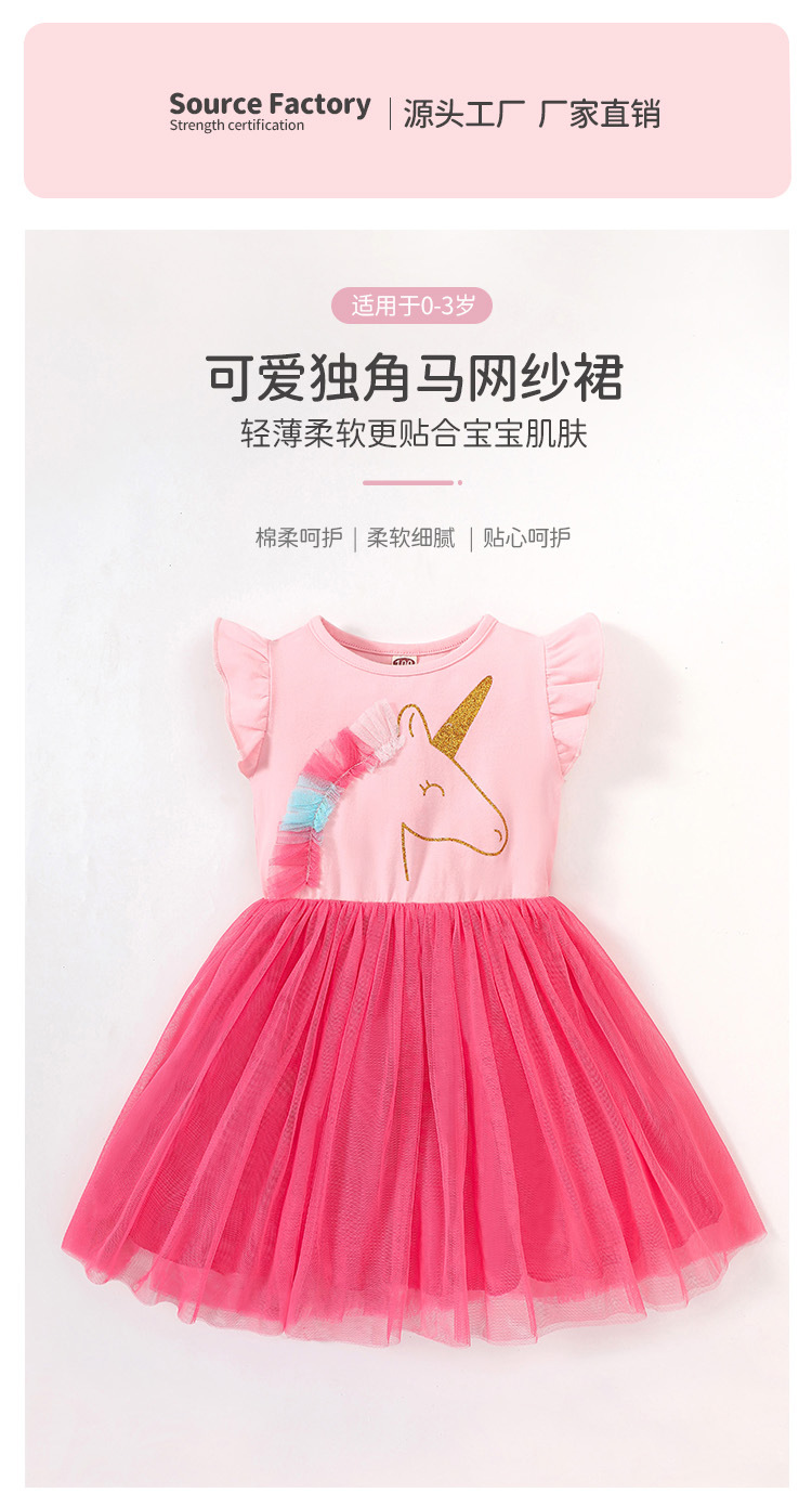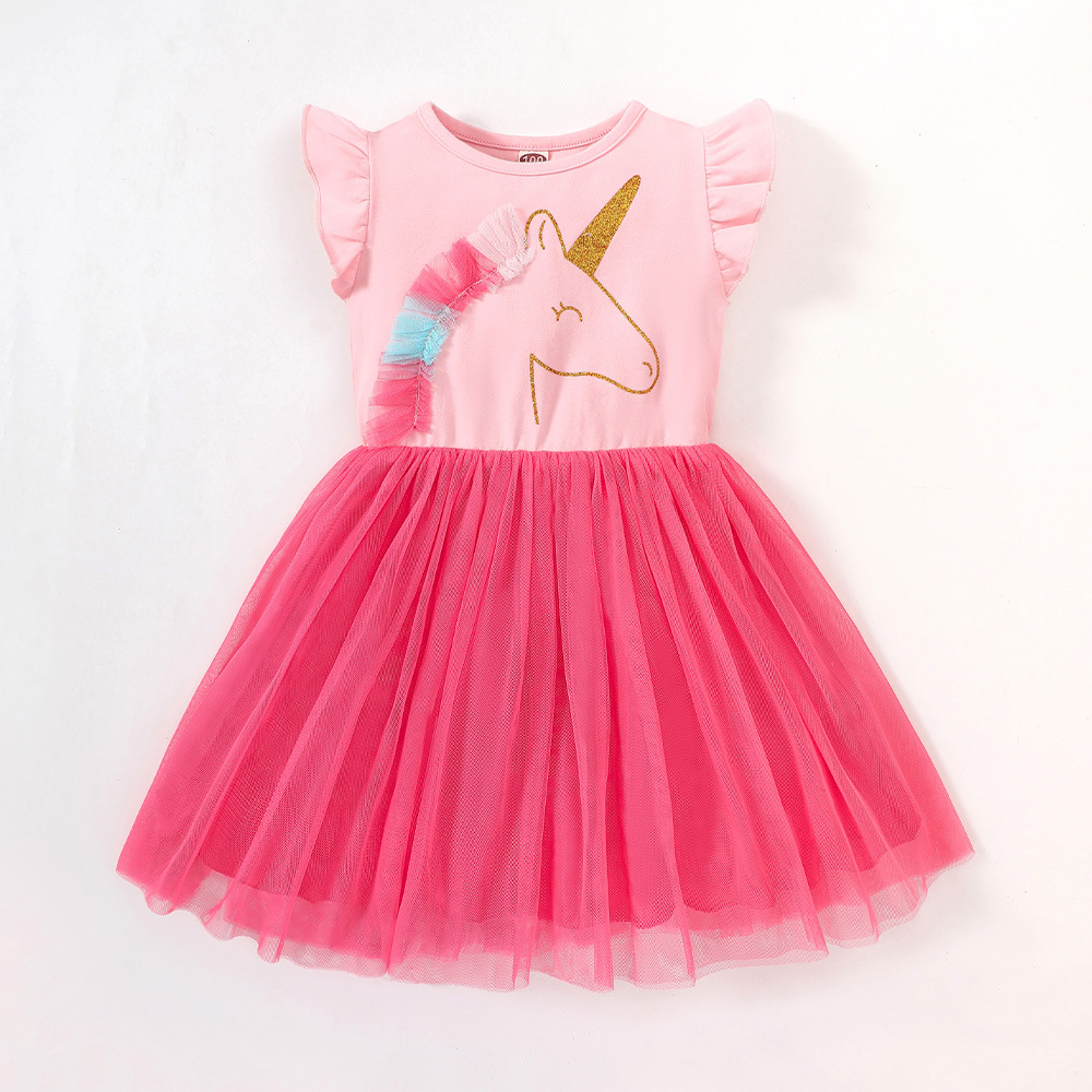 어린이 여름 치마 아동복 플라잉 슬리브 인쇄 만화 말 원피스 아동복 핑크 메쉬 공주 원피스 재고스토어 가기