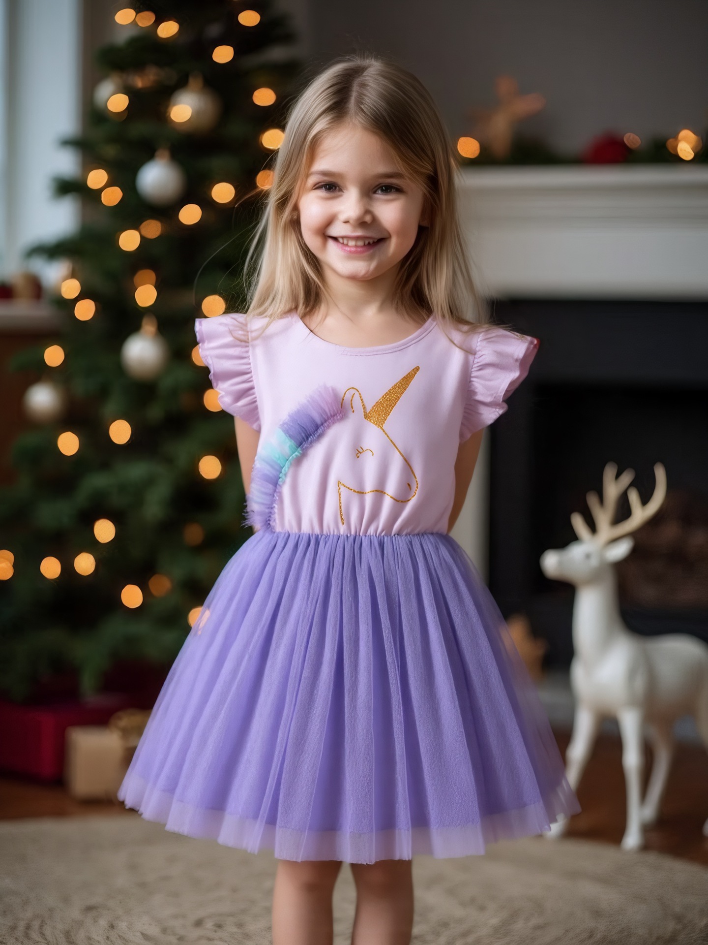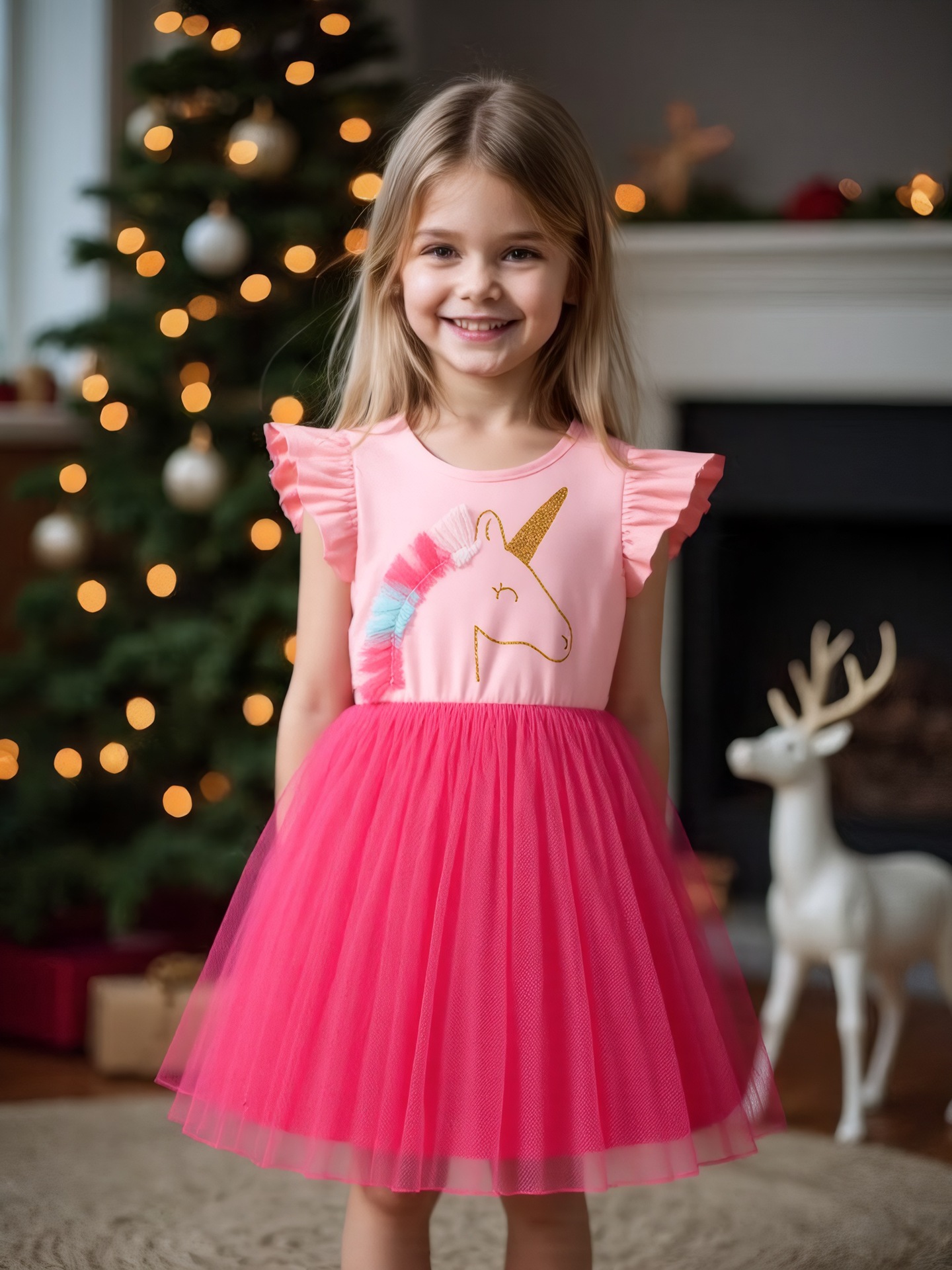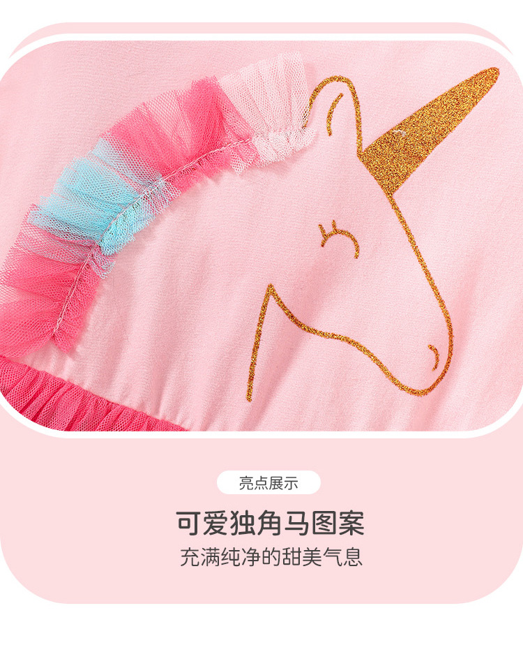 어린이 여름 치마 아동복 플라잉 슬리브 인쇄 만화 말 원피스 아동복 핑크 메쉬 공주 원피스 재고스토어 가기