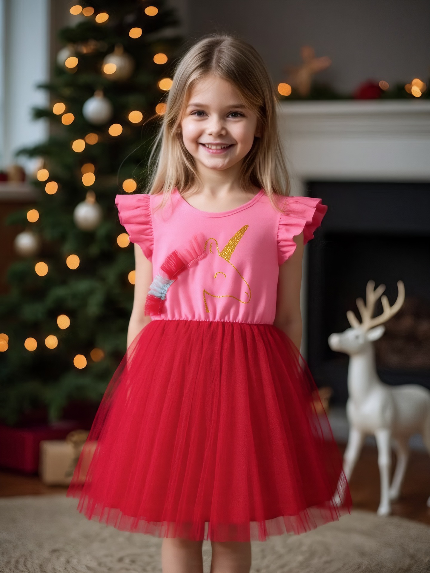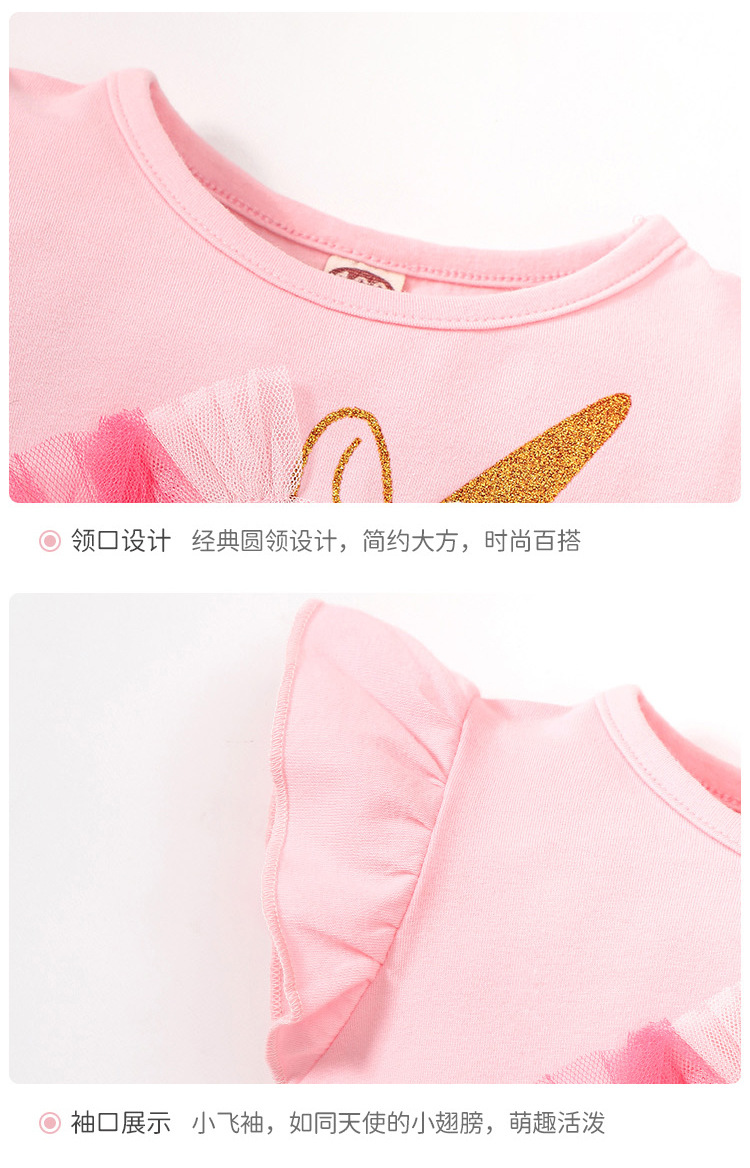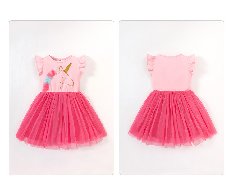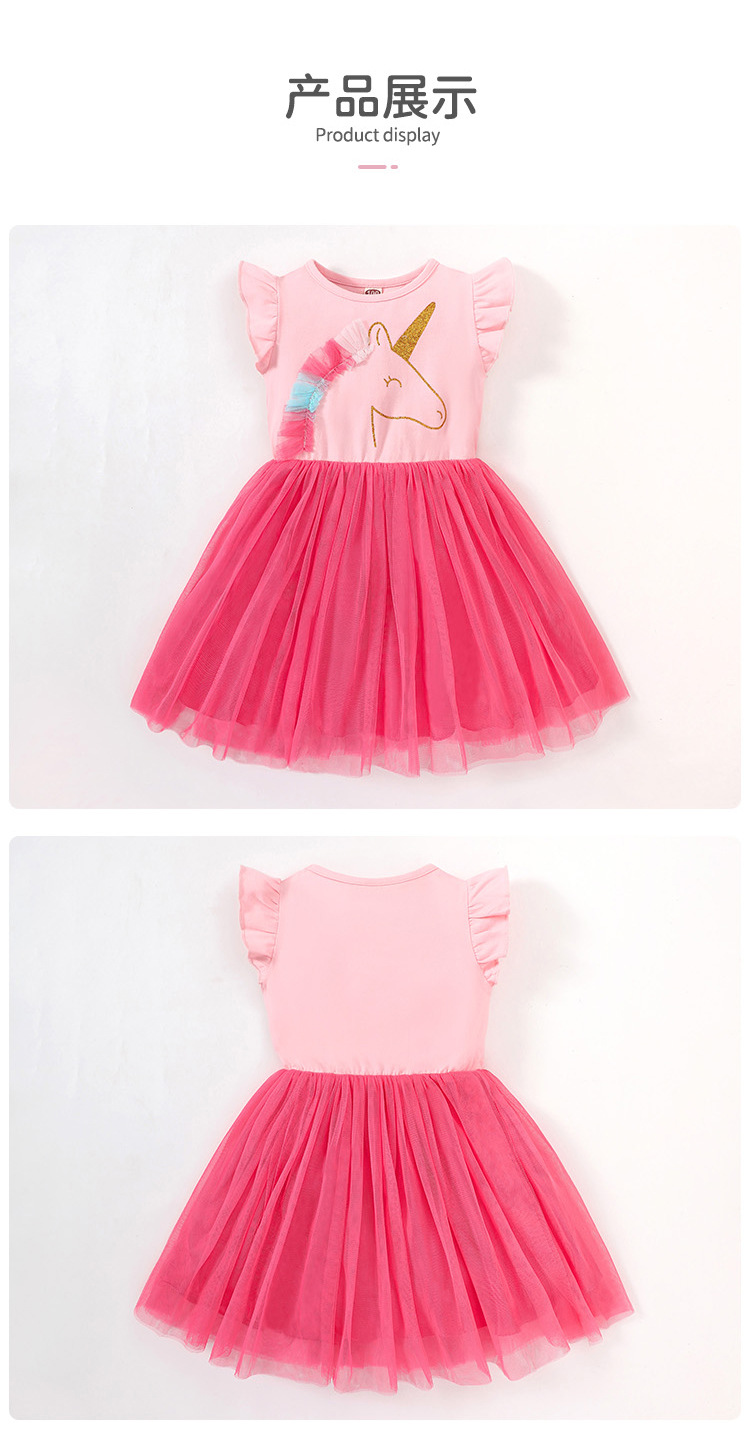 어린이 여름 치마 아동복 플라잉 슬리브 인쇄 만화 말 원피스 아동복 핑크 메쉬 공주 원피스 재고