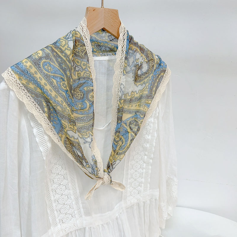 여름 모리 레이스 실크 스카프 여행 장식 자외선 차단제 스카프 삼각형 스카프 여성용 목 보호 작은 숄