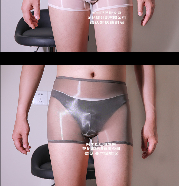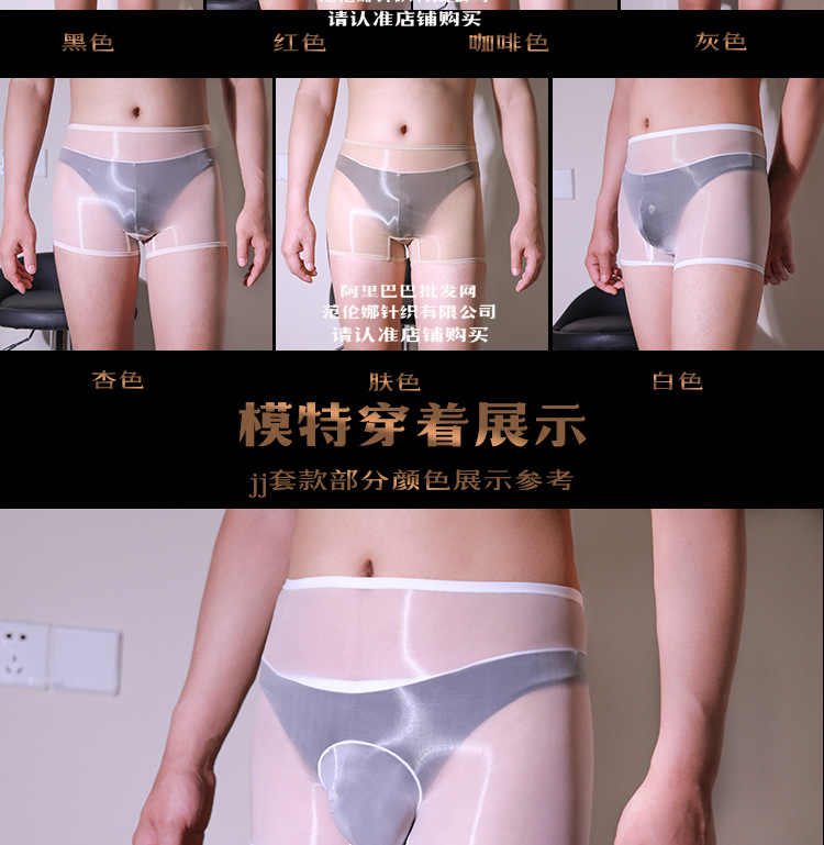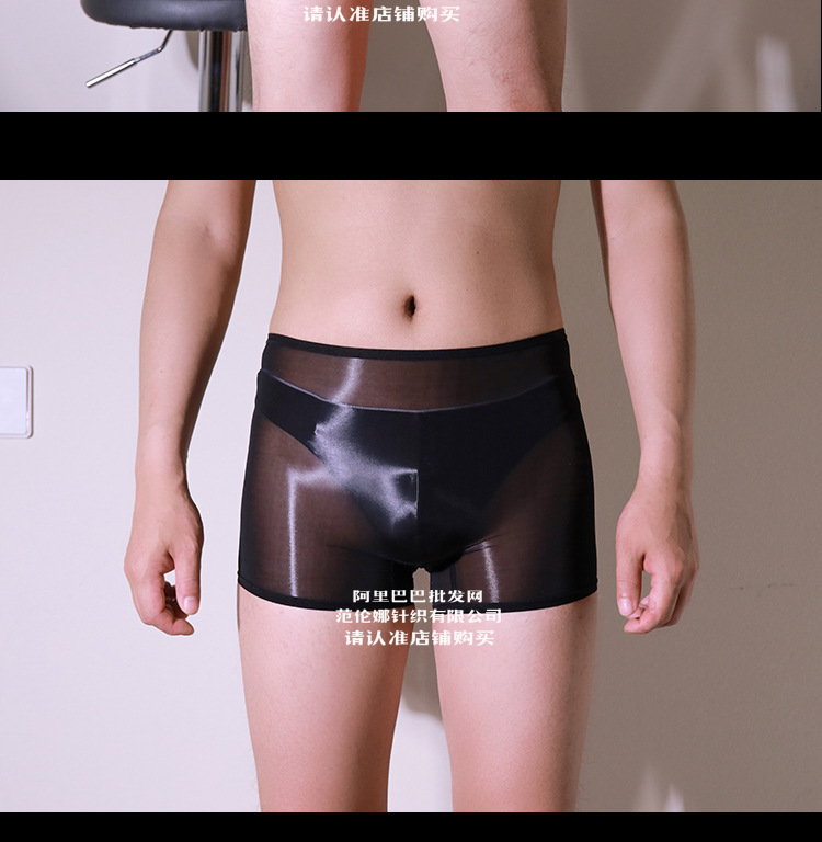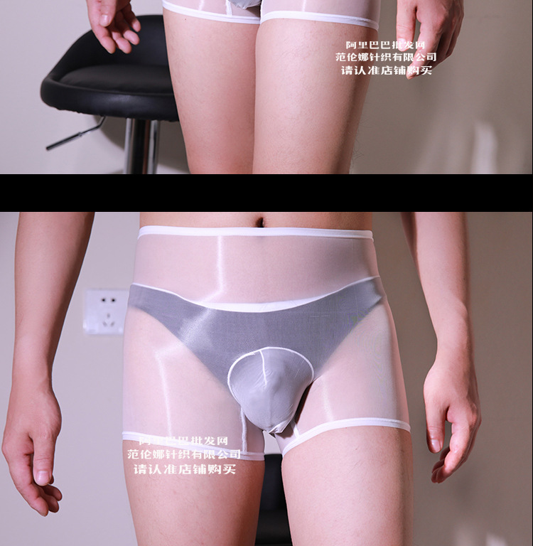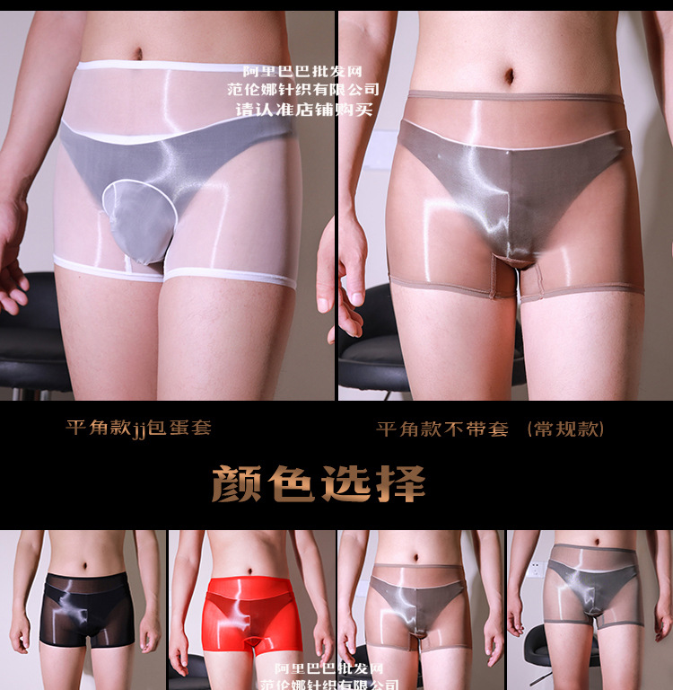 남자의 섹시한 기름 밝은 전체 투명 복서 속옷 초박형 실키 통기성 섹시한 총알 분리 JJ 세트 속옷스토어 가기