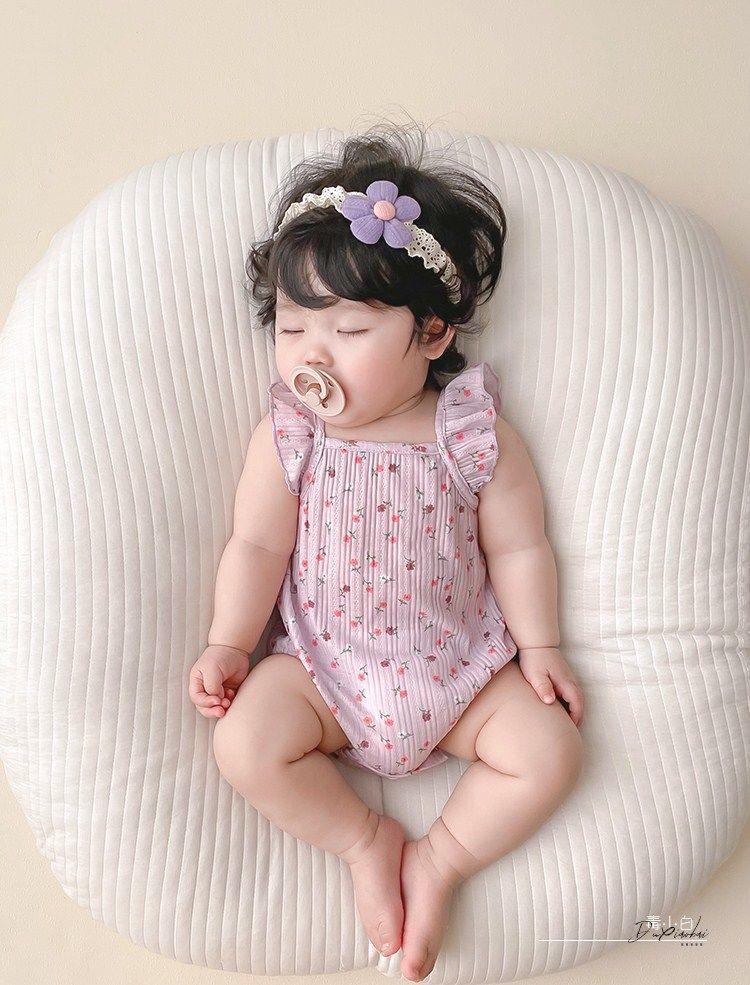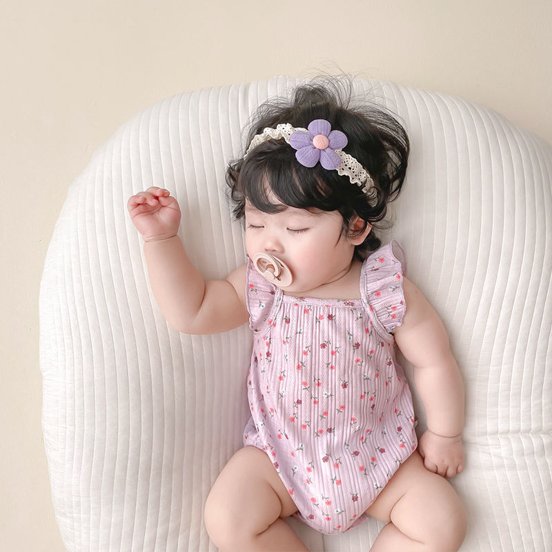 신생아의 여름 옷 가방 방귀 아기 옷 여름 얇은 슬링 세트 아기 소녀의 보름달 모자 등반 세트스토어 가기
