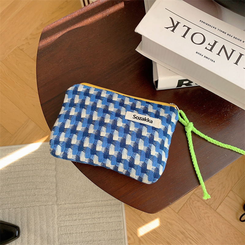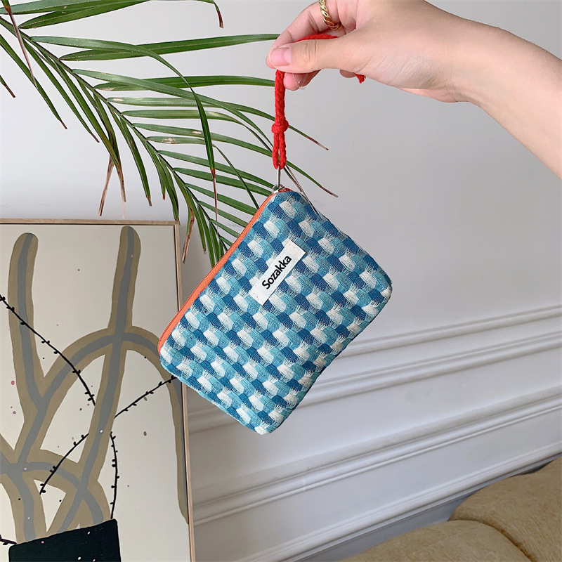 35202 일본식 코팅 격자 무늬 테더 입 레드 백 여성용 화장품 가방 휴대용 동전 지갑 세척 보관 가방