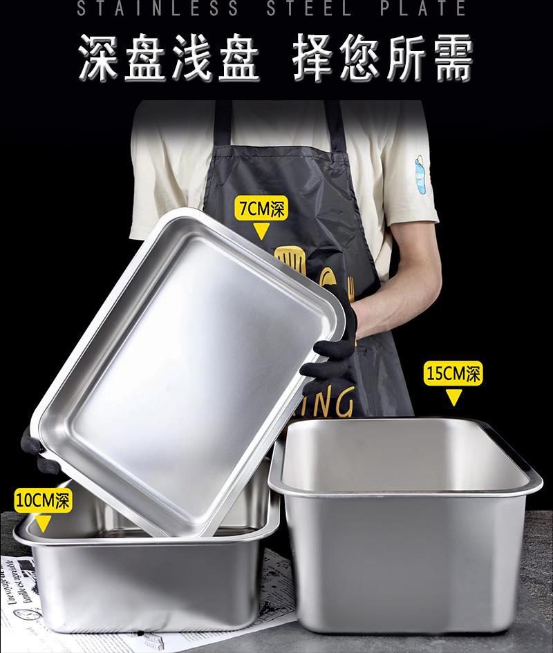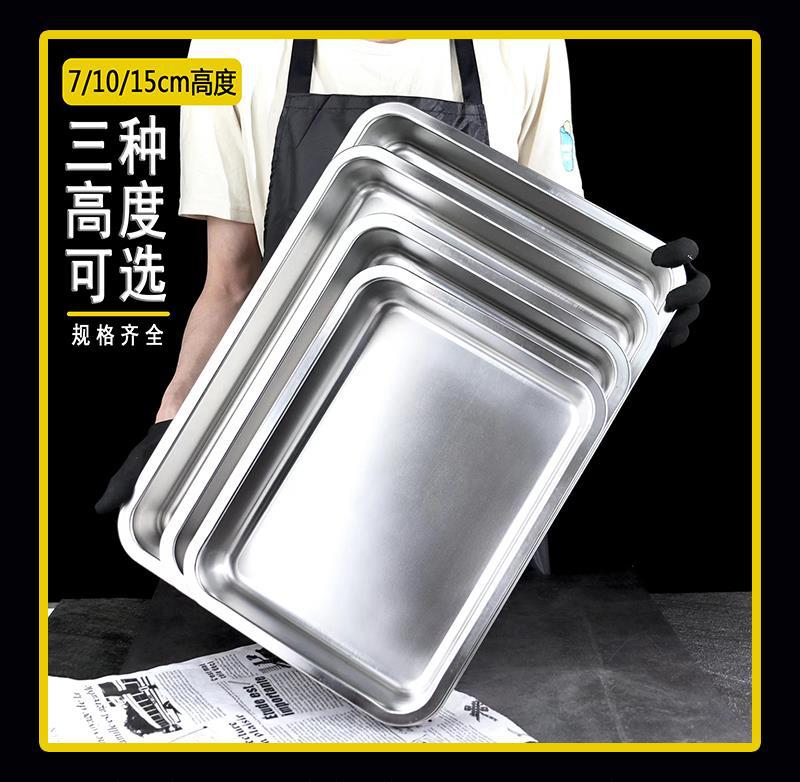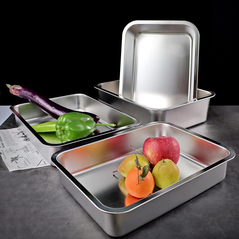 304 스테인레스 스틸 사각 분지 직사각형 사각형 플레이트 뚜껑 사각 상자 플랫 바닥 트레이 패스트 푸드 그릇 뷔페 부분 그릇스토어 가기