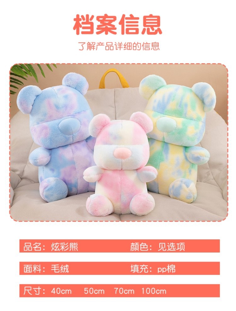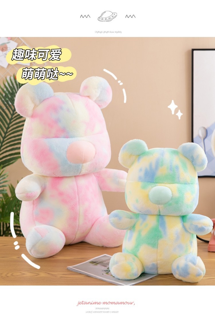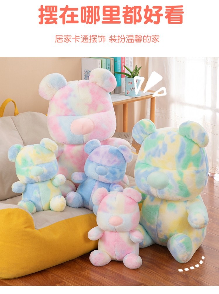 만화 폭력 다채로운 곰 봉제 장난감 넥타이 염색 테디 베어 인형 어린이 생일 선물 가게 도매스토어 가기