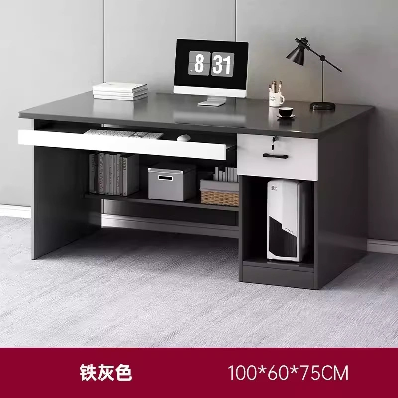 데스크탑 컴퓨터 책상 현대 간단한 사무실 책상 및 의자 조합 와이어 구멍이있는 간단한 사무실 직원 책상 보스 책상 사무실 직원 책상