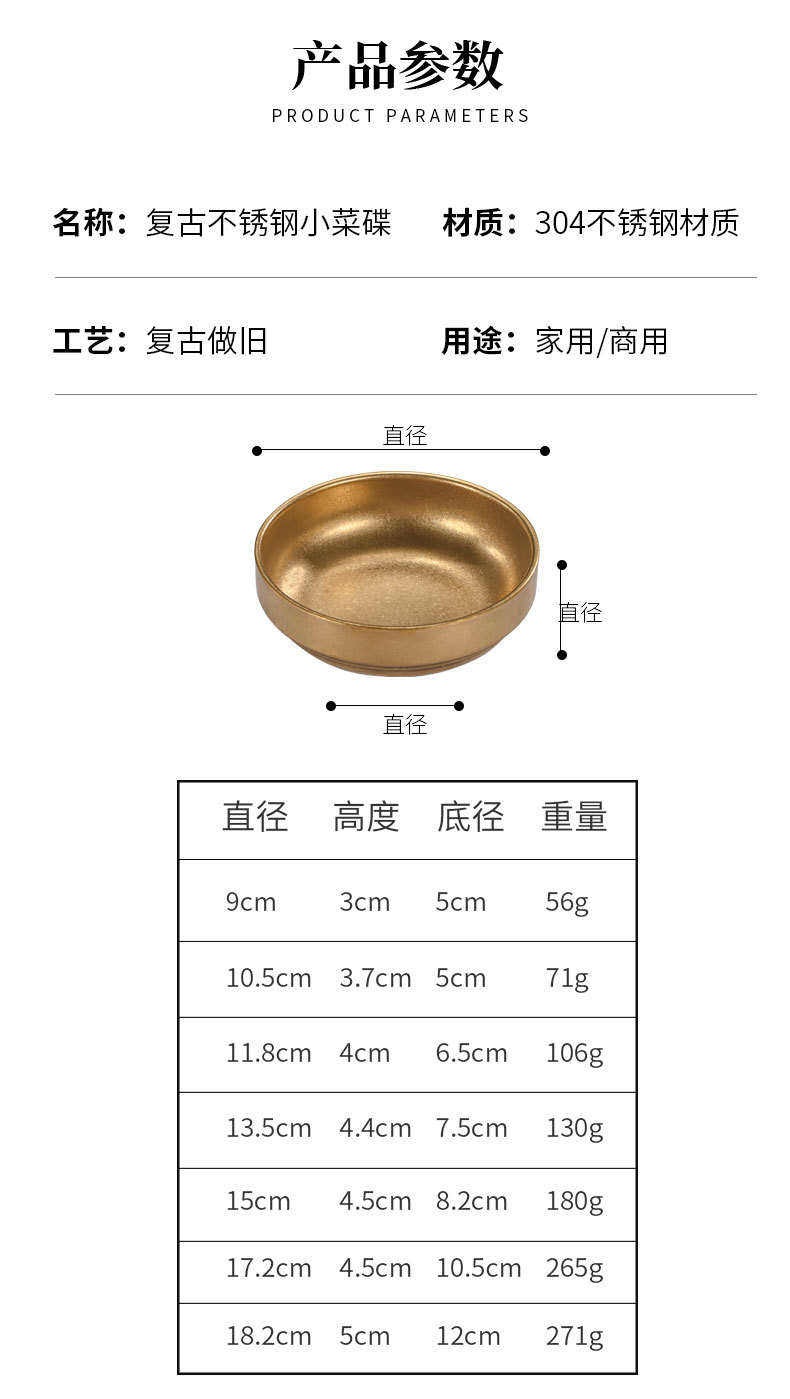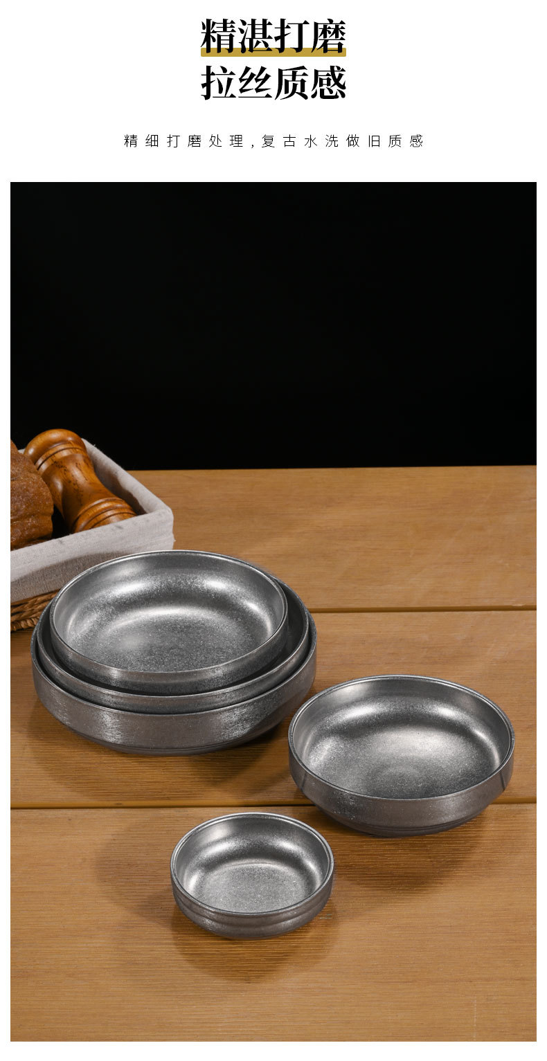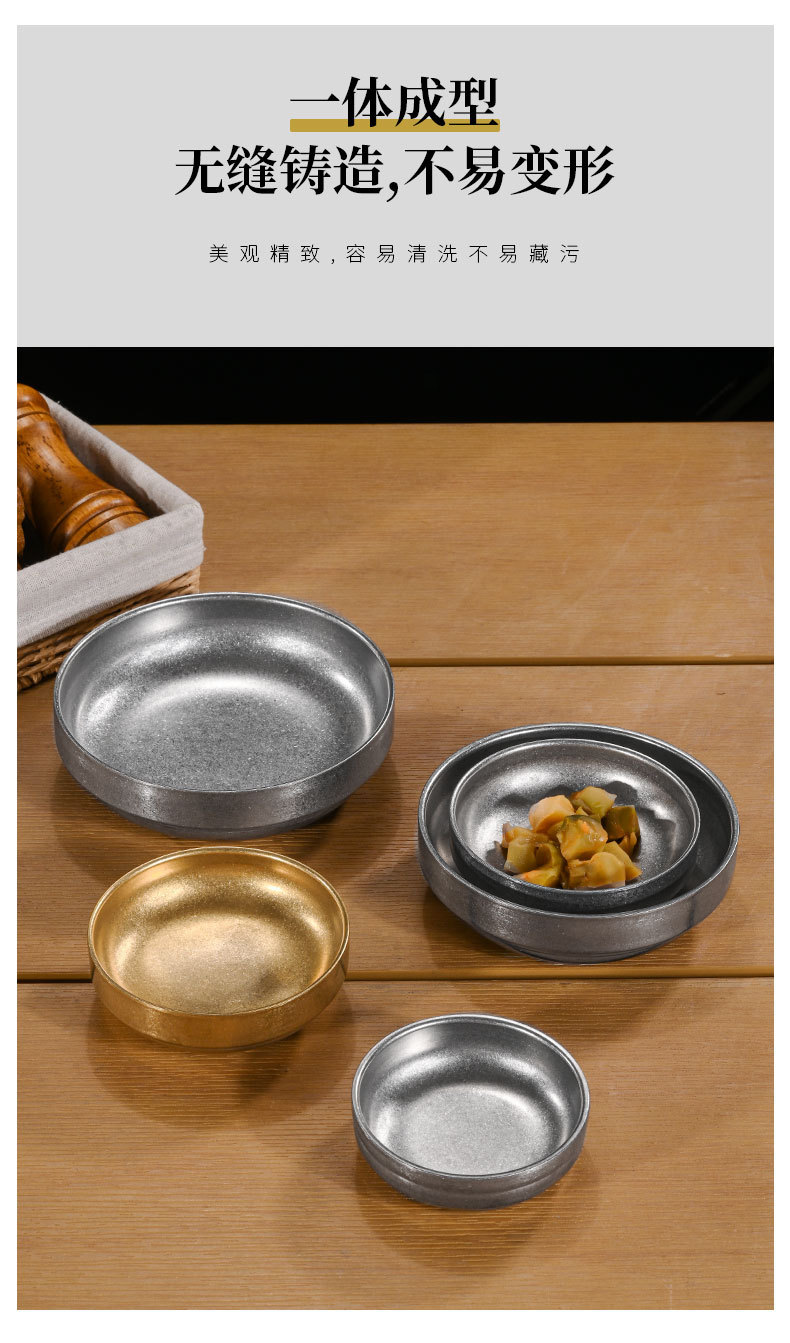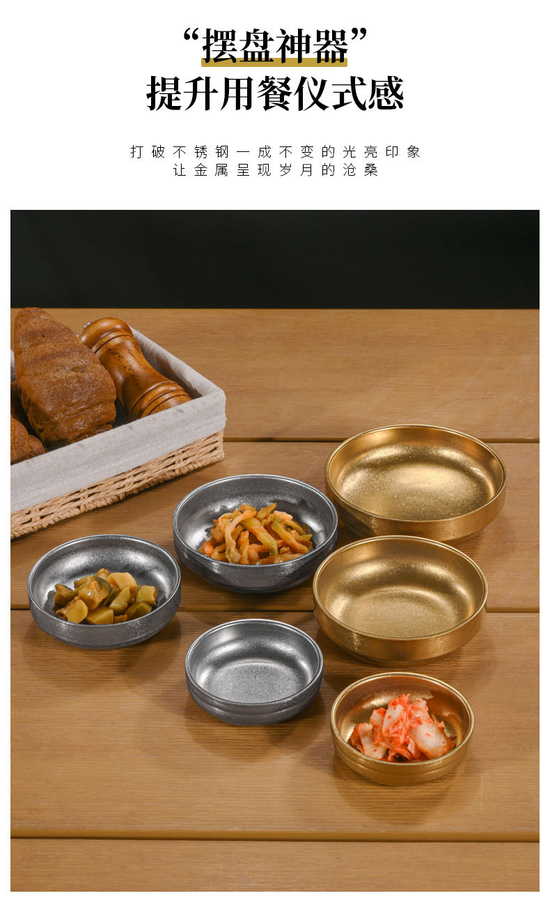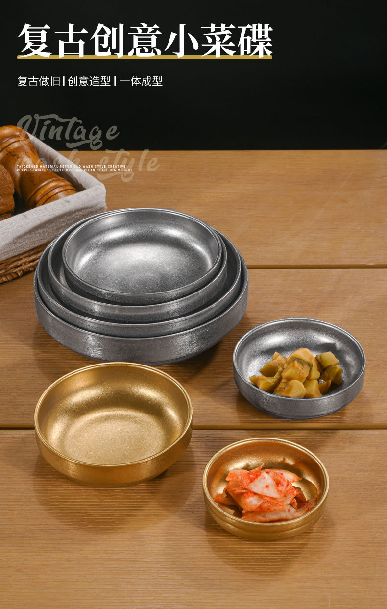 빈티지 식기 한국식 304 스테인레스 스틸 김치 요리 시판 담근 소스 딥 접시 작은 접시 조미료 요리스토어 가기
