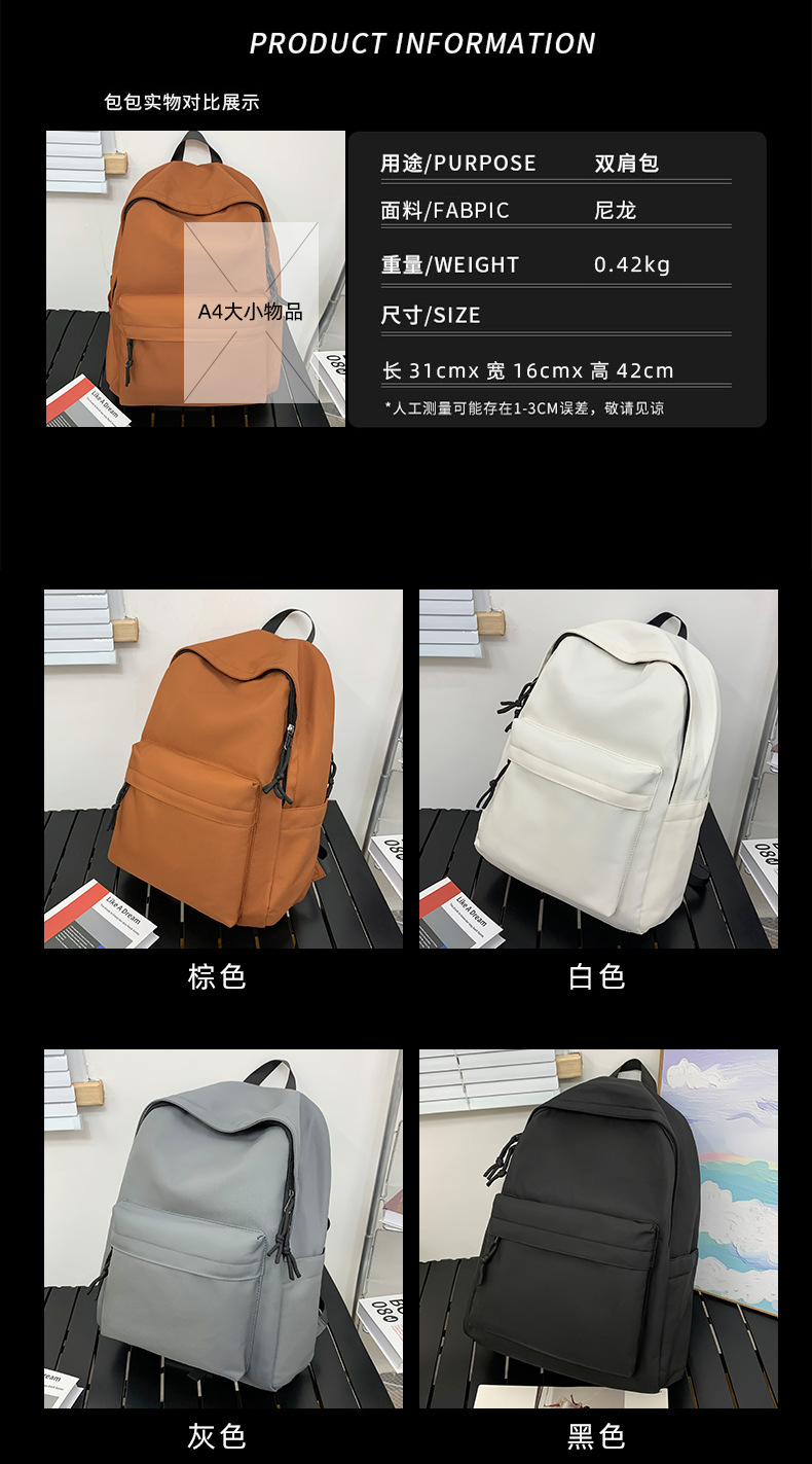 중학생 책가방 대용량 단색 심플 커플 백팩 캠퍼스 스타일 일본식 다용도 여성 백팩 경량