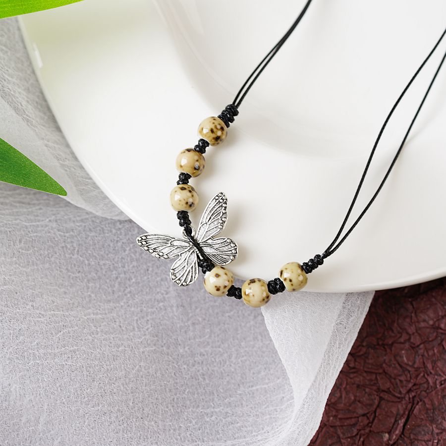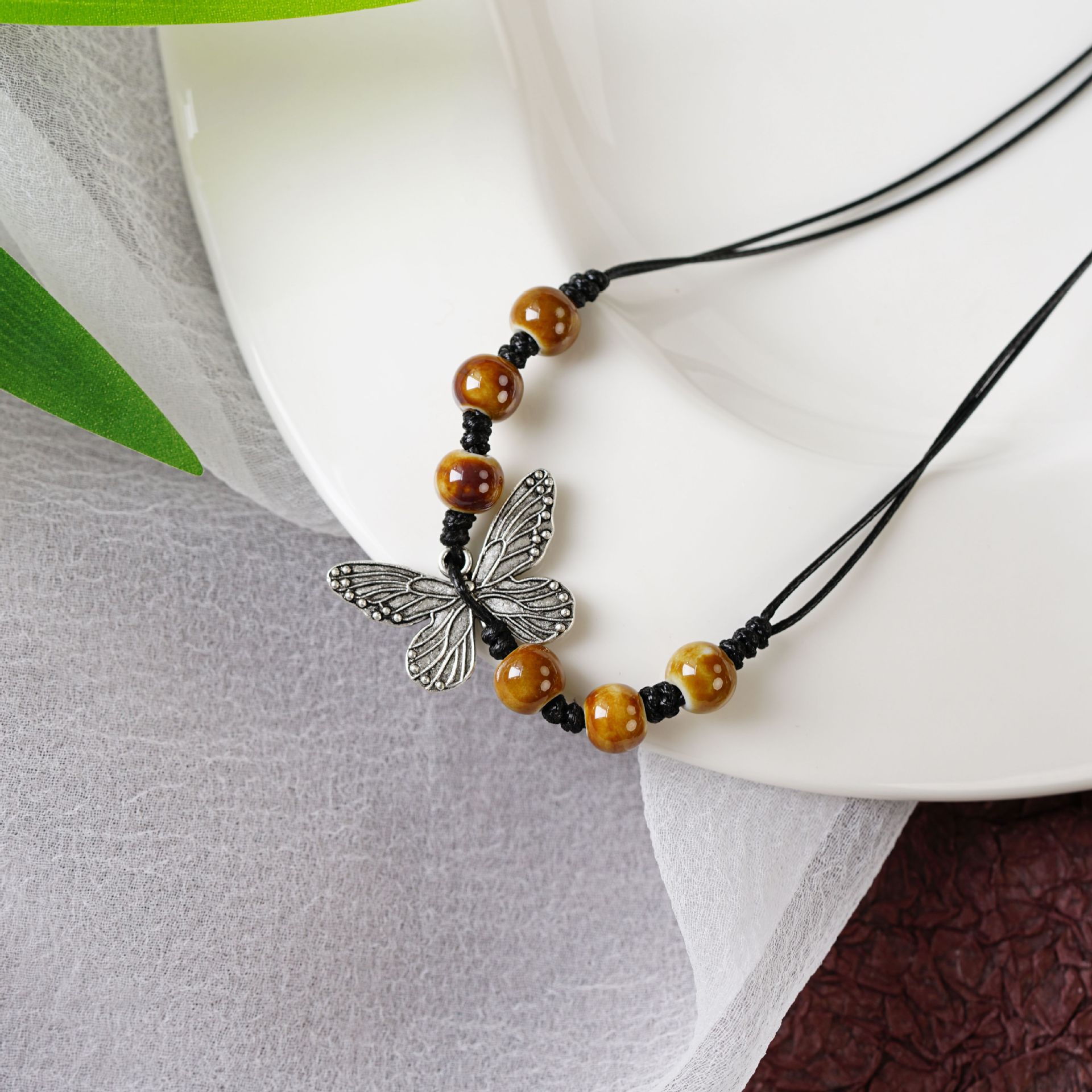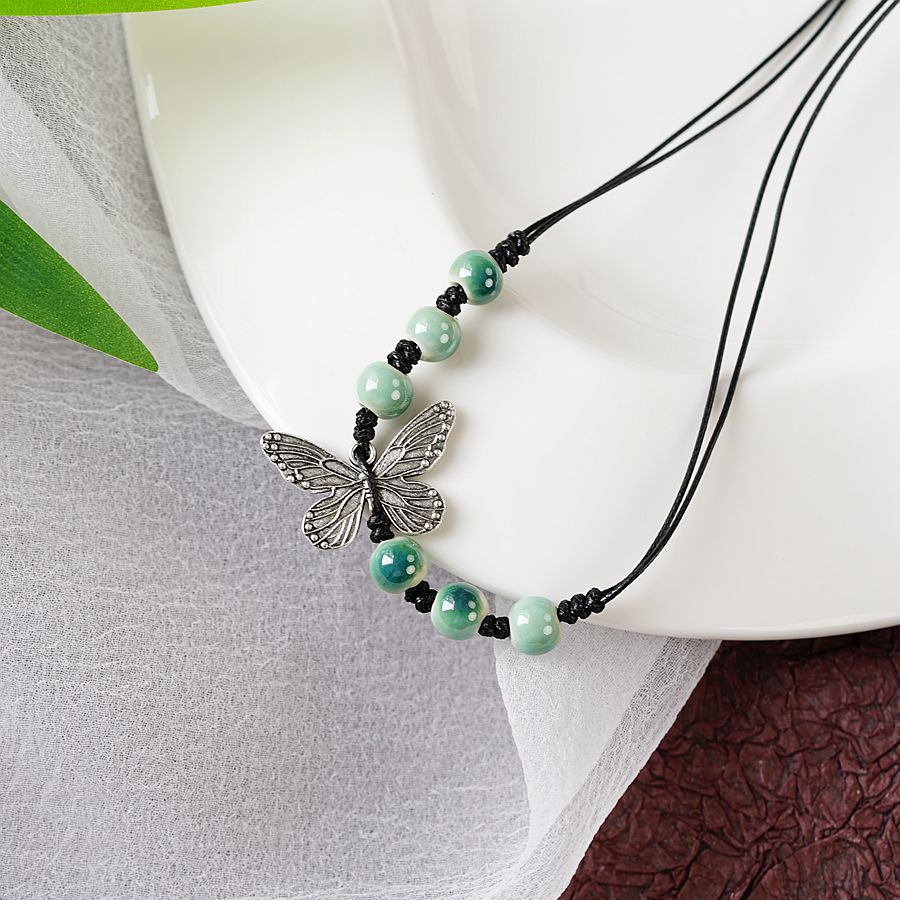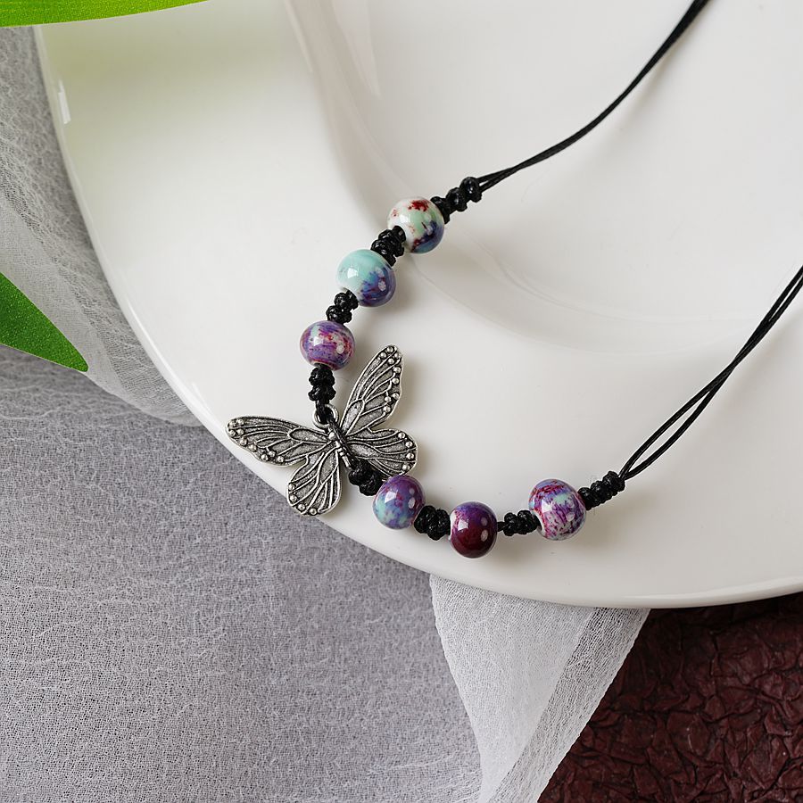새로운 중국 수제 레트로 세라믹 나비 목걸이 여성의 민족 스타일 국립 조수 골동품 쇄골 체인 졸라매는 끈 목걸이 체인 도매