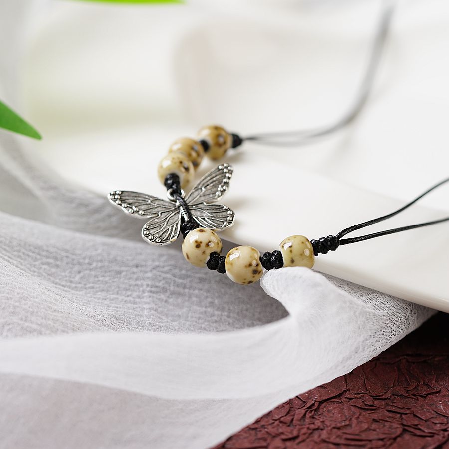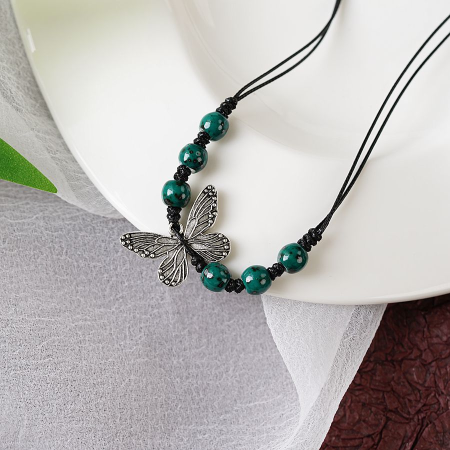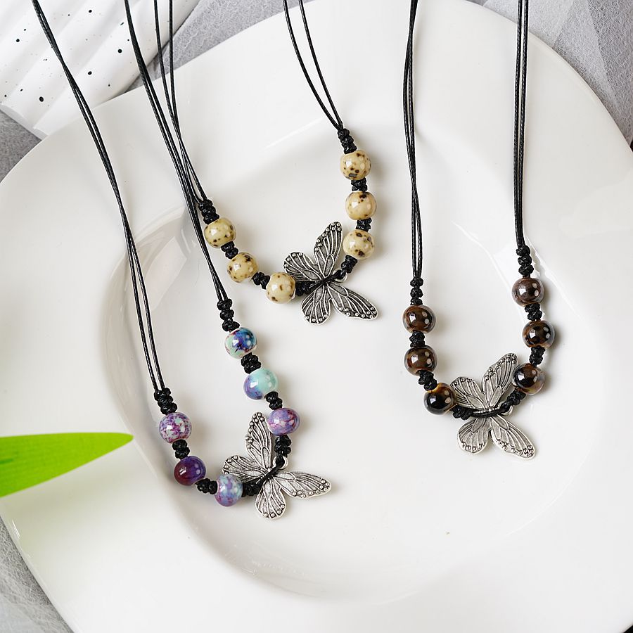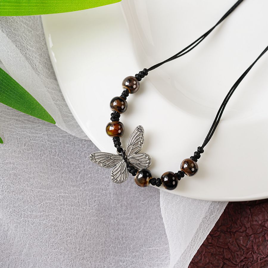 새로운 중국 수제 레트로 세라믹 나비 목걸이 여성의 민족 스타일 국립 조수 골동품 쇄골 체인 졸라매는 끈 목걸이 체인 도매