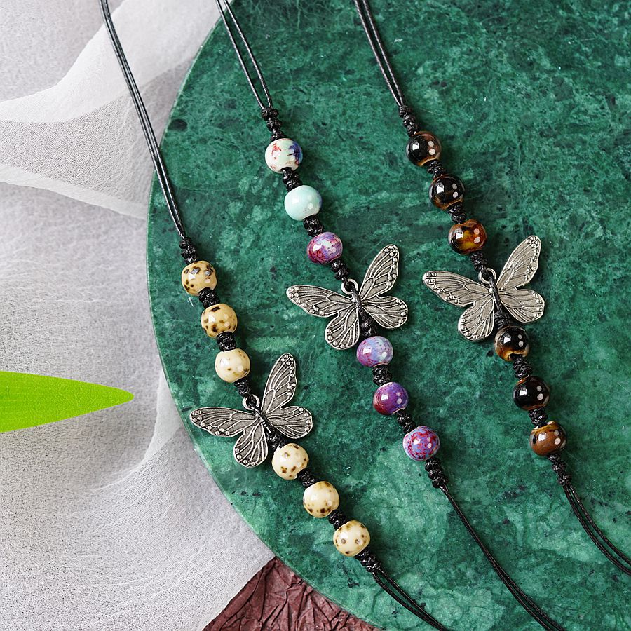 새로운 중국 수제 레트로 세라믹 나비 목걸이 여성의 민족 스타일 국립 조수 골동품 쇄골 체인 졸라매는 끈 목걸이 체인 도매스토어 가기