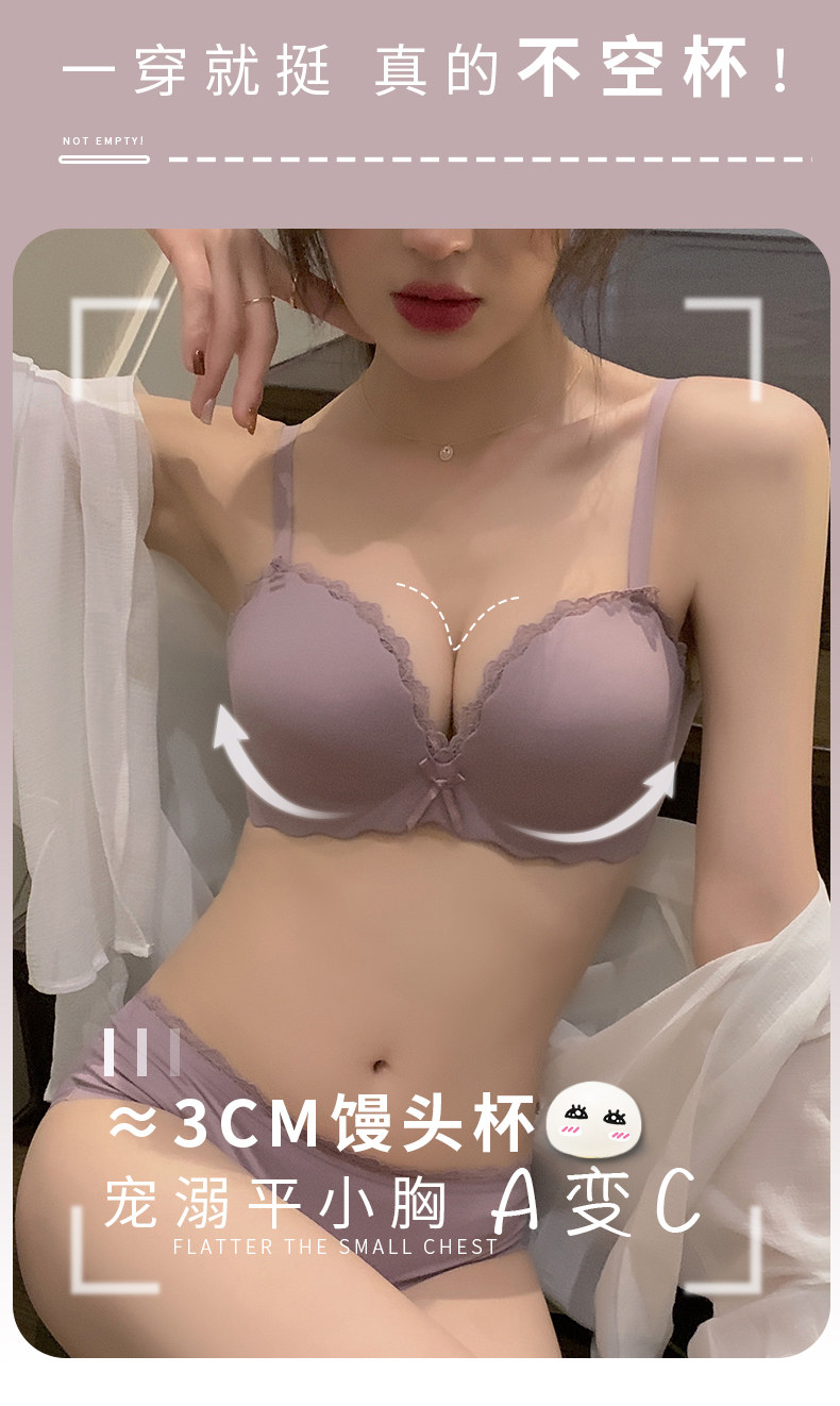 6612 아니 스틸 링 편안한 속옷 여자의 작은 가슴 푸시 업 브래지어 두꺼운 여자의 플랫 가슴 세트 섹시한 브래지어스토어 가기