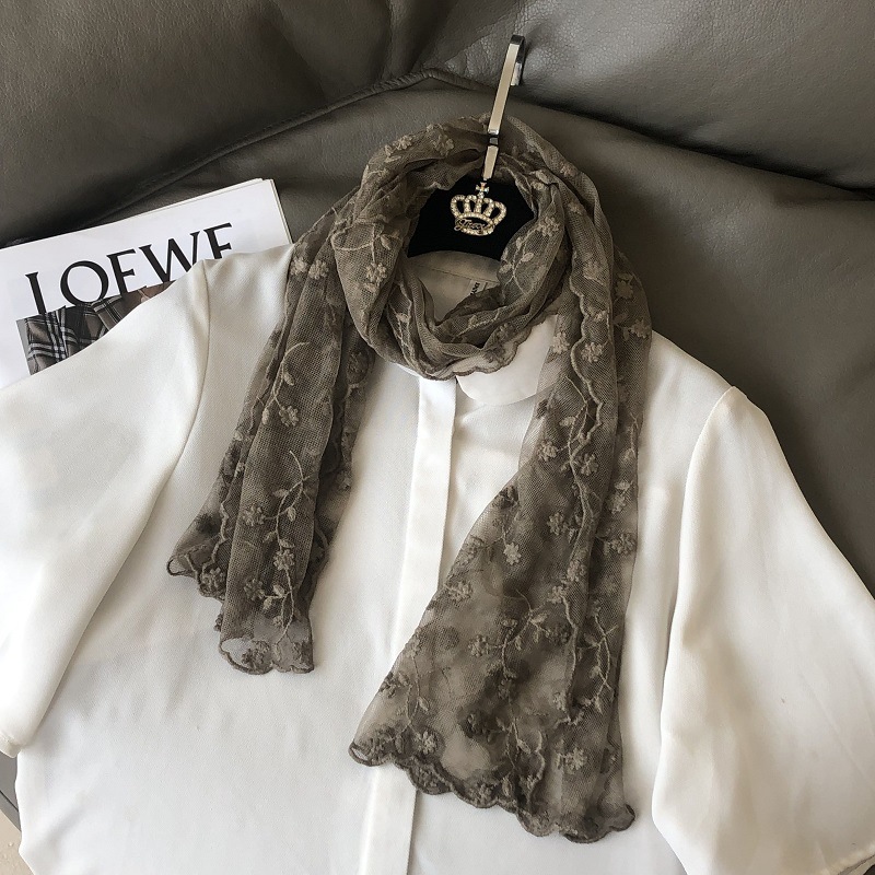 로맨틱하고 달콤한 모리 스타일 레이스 스카프 여성용 한국 스타일 자수 레이스 스카프 일본식 봄 여름 모든 일치 새 스카프