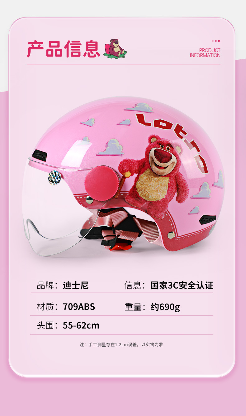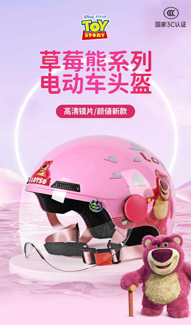 디즈니 딸기 곰 전기 자동차 헬멧 오토바이 헬멧 남여 공용 사계절 만능 배터리 자동차 자외선 차단제 반 헬멧스토어 가기