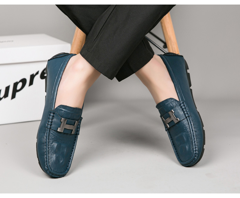 라이브 폭발 악어 콩 신발 크로스 보더 플러스 사이즈 게으른 운전 신발 영국 캐주얼 신발 가죽 남성 신발
