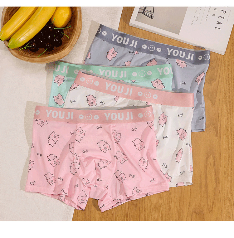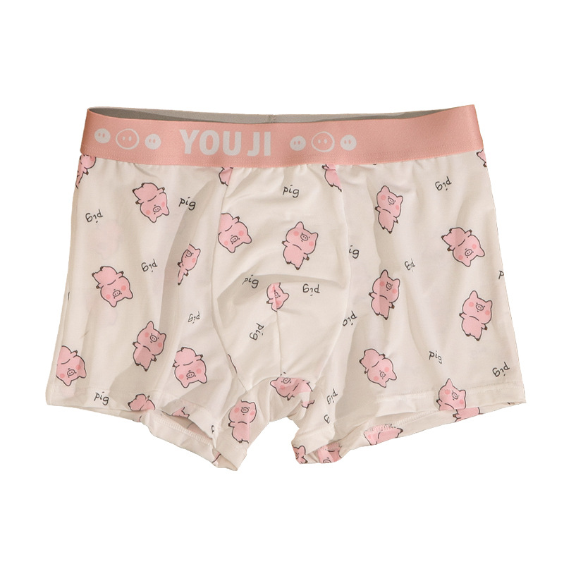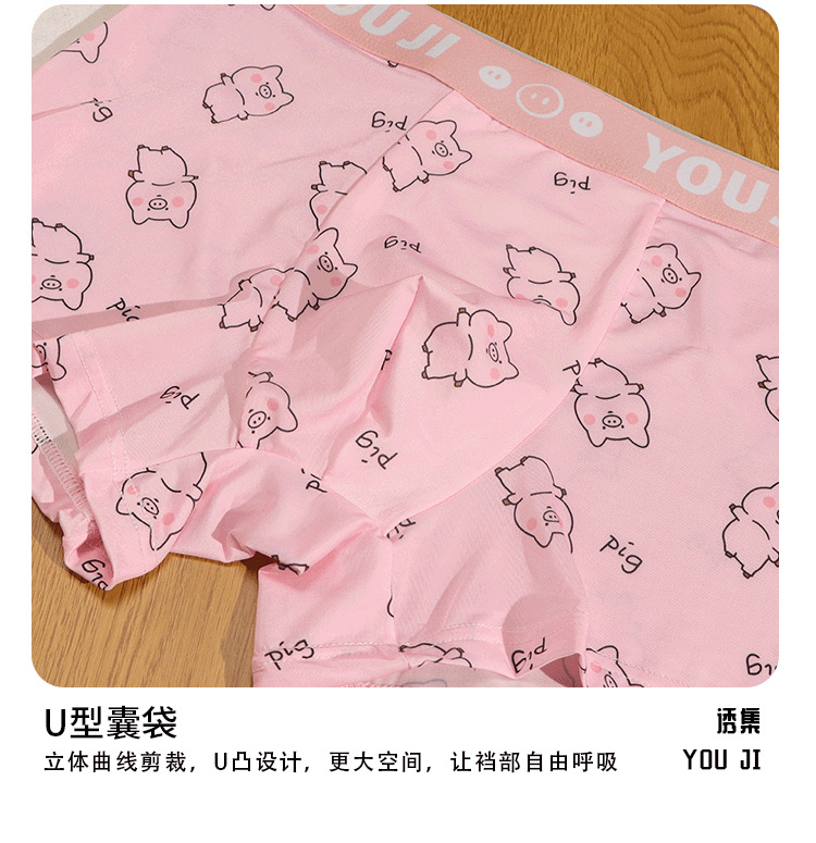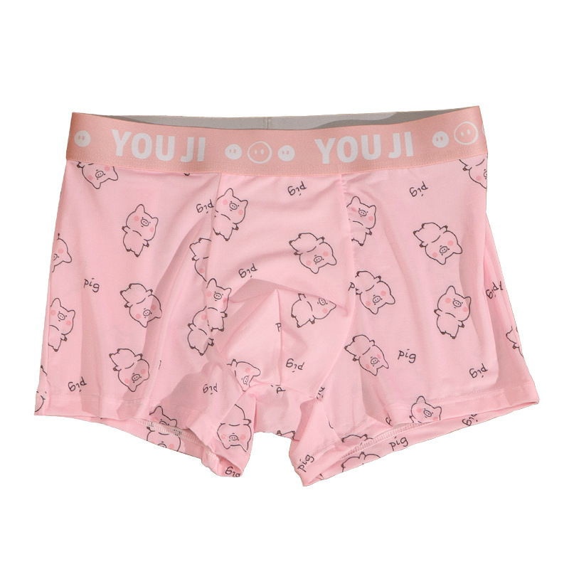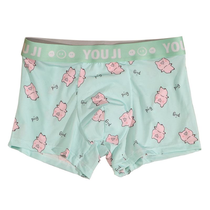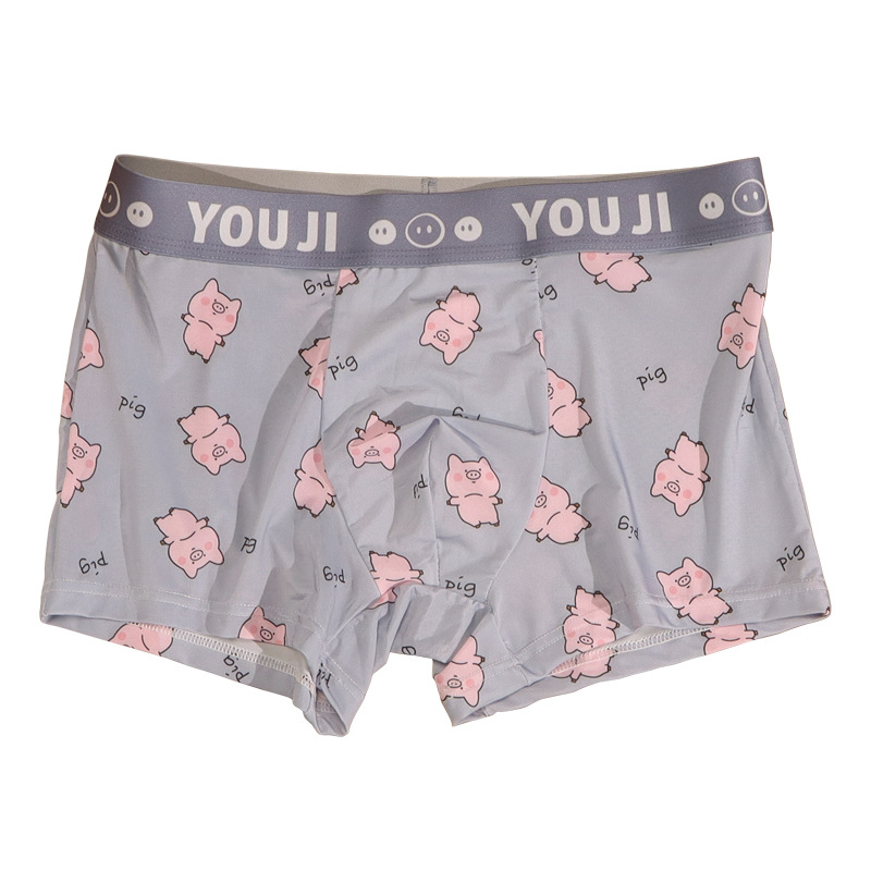 속옷 남자의 아이스 실크 통기성 복서 봄과 여름 만화 돼지 얇은 느슨한 편안한 소년 복서 반바지