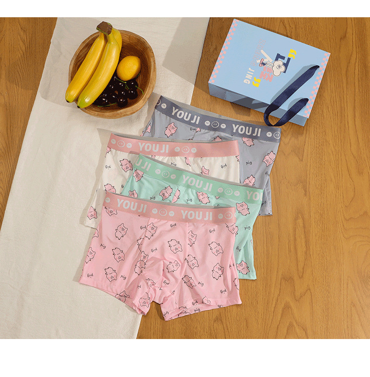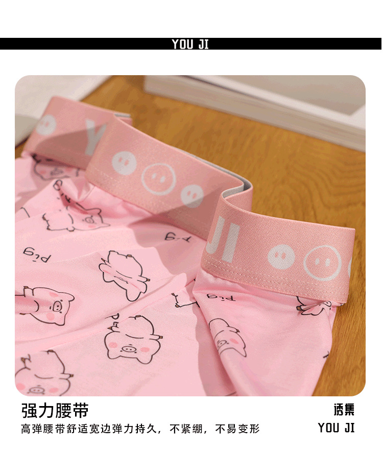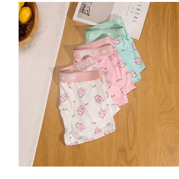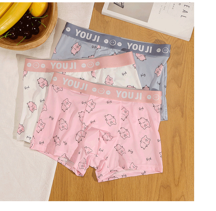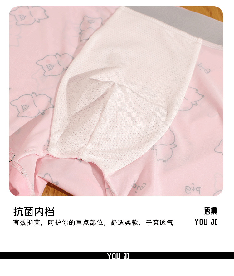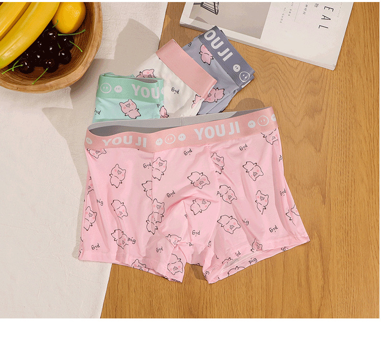 속옷 남자의 아이스 실크 통기성 복서 봄과 여름 만화 돼지 얇은 느슨한 편안한 소년 복서 반바지