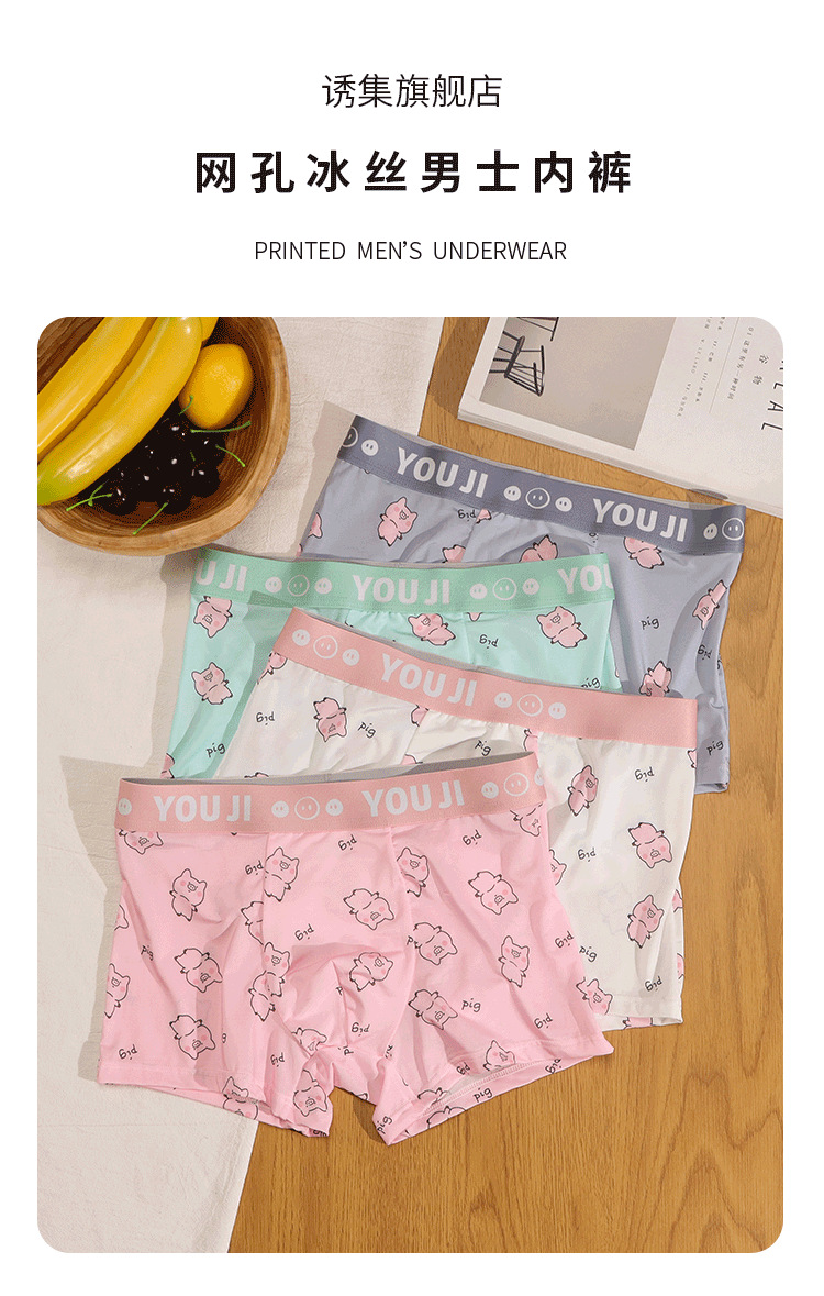 속옷 남자의 아이스 실크 통기성 복서 봄과 여름 만화 돼지 얇은 느슨한 편안한 소년 복서 반바지스토어 가기