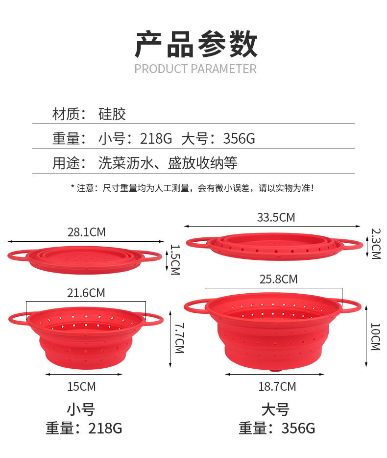 • 스몰 사이즈 빨간색 접이식 배수 바구니