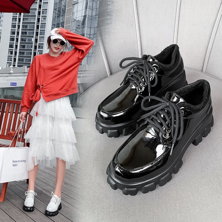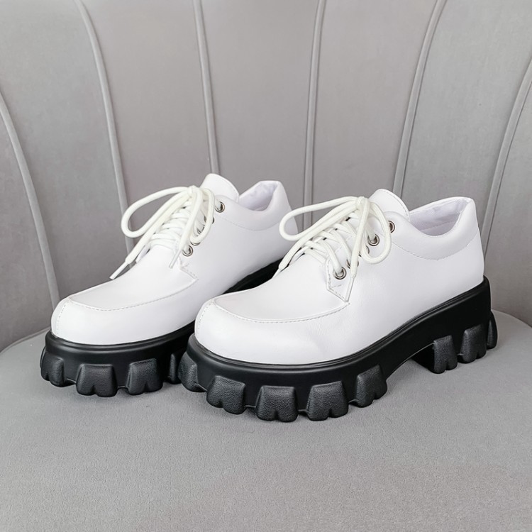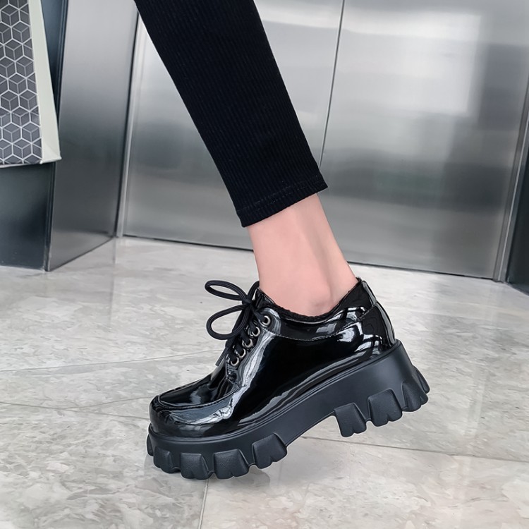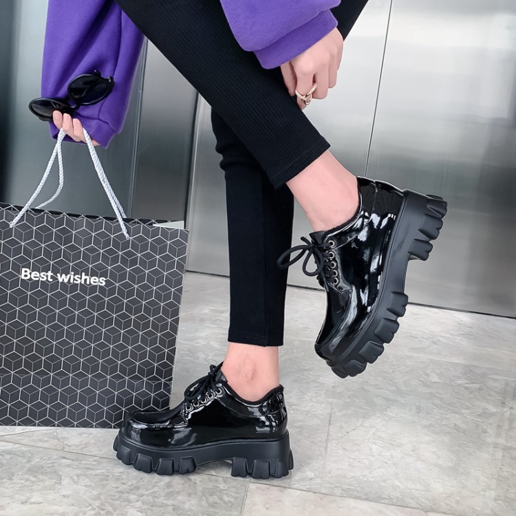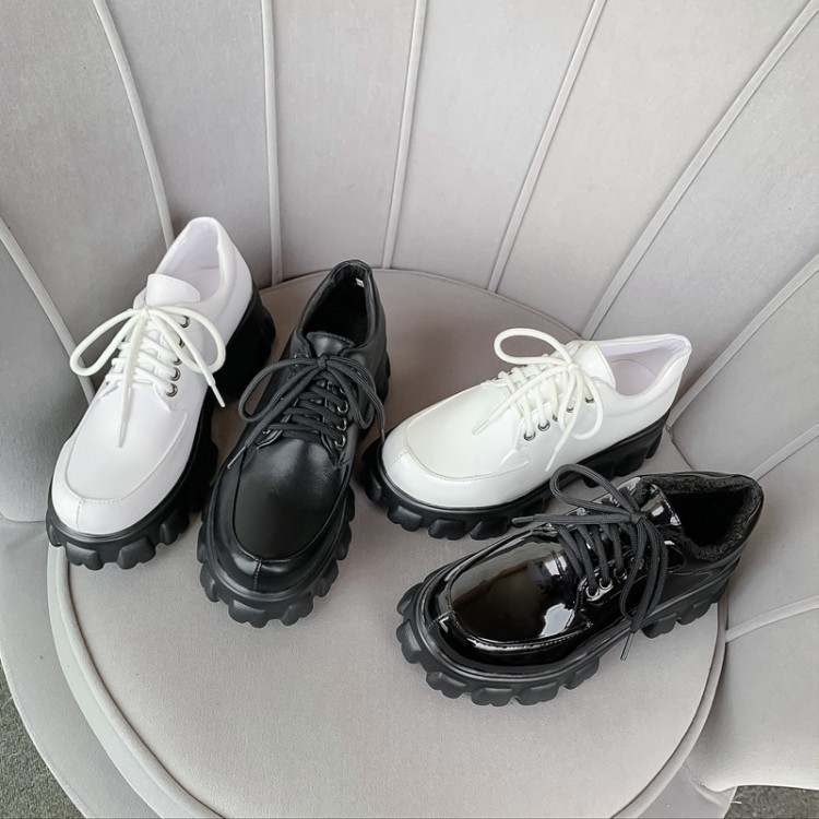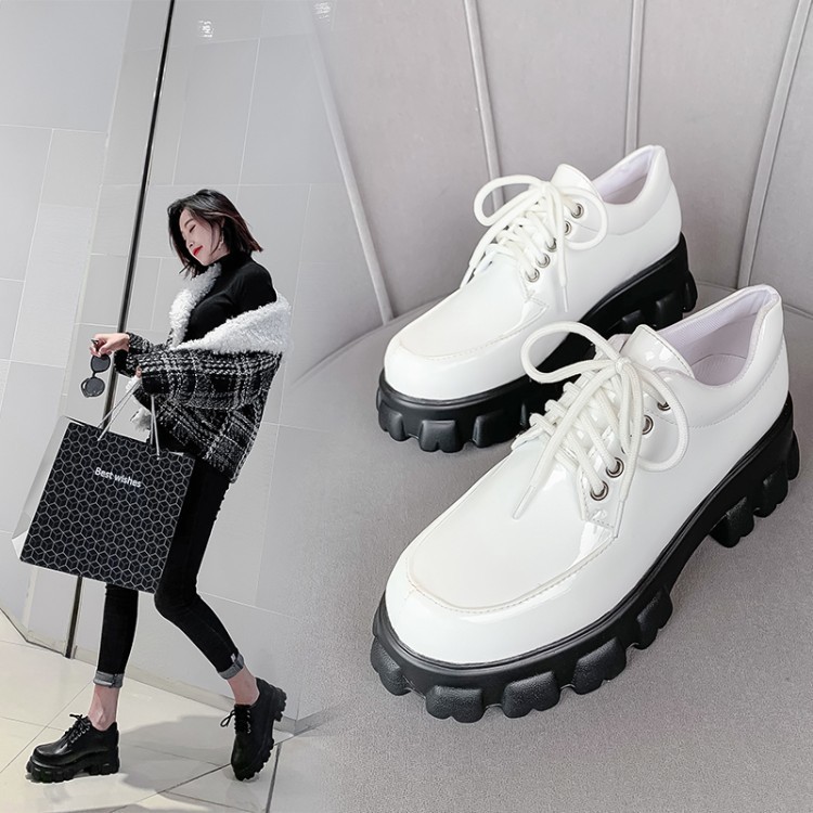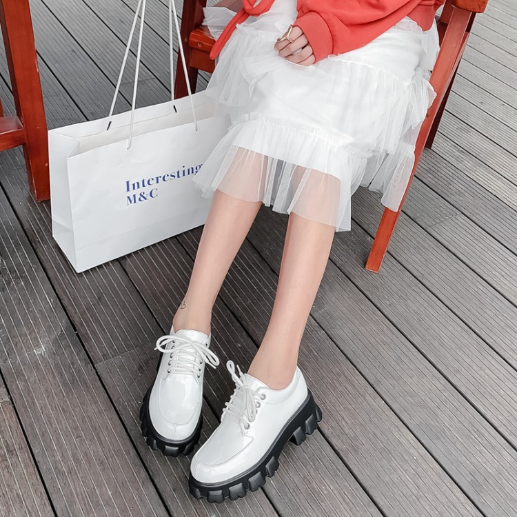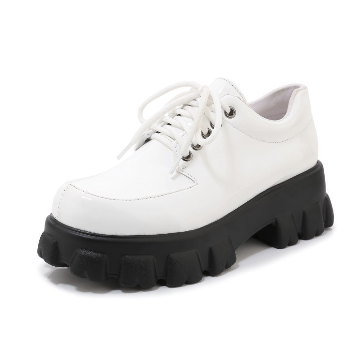 페이턴트 가죽 플랫폼 신발 여성용 두꺼운 바닥 신발 싱글 신발 여성용 소형 가죽 신발 봄과 여름 새로운 유럽 및 미국 흰색 크기 전면 레이스