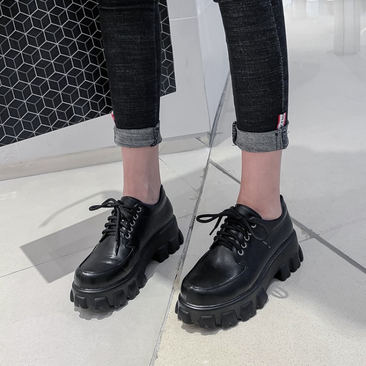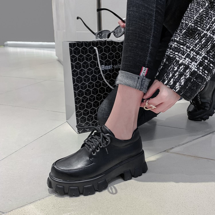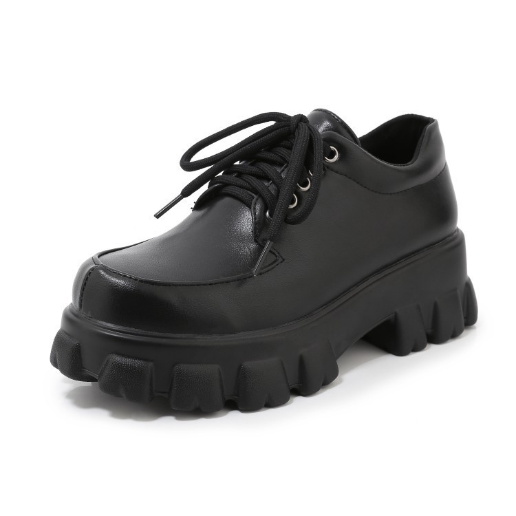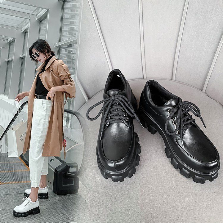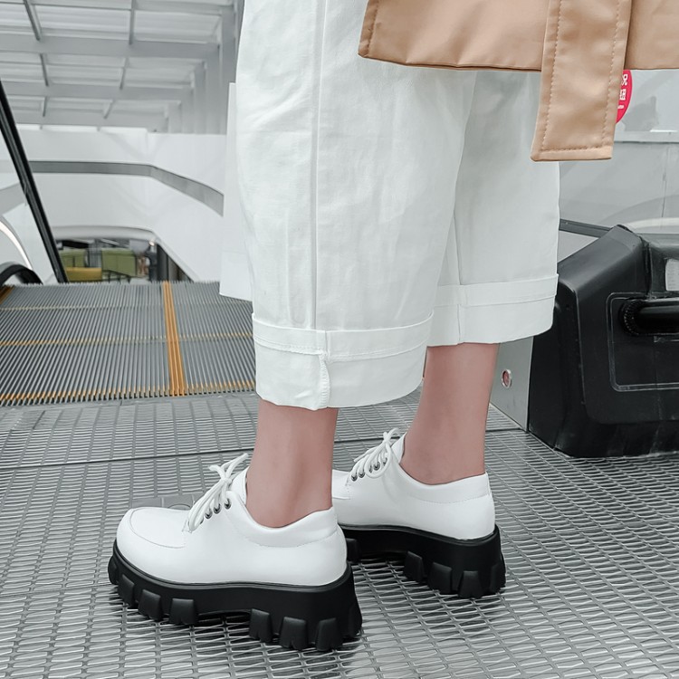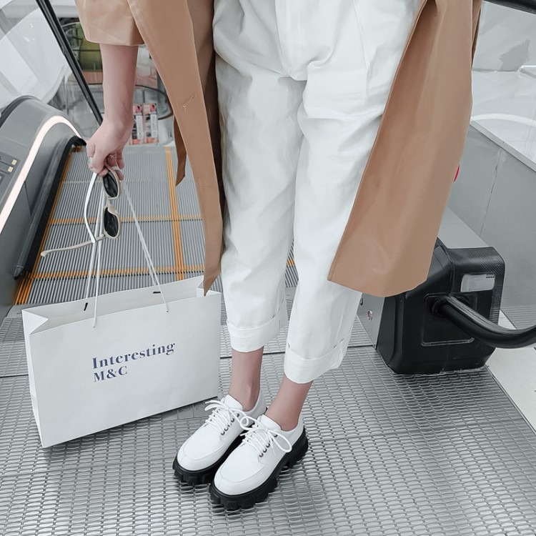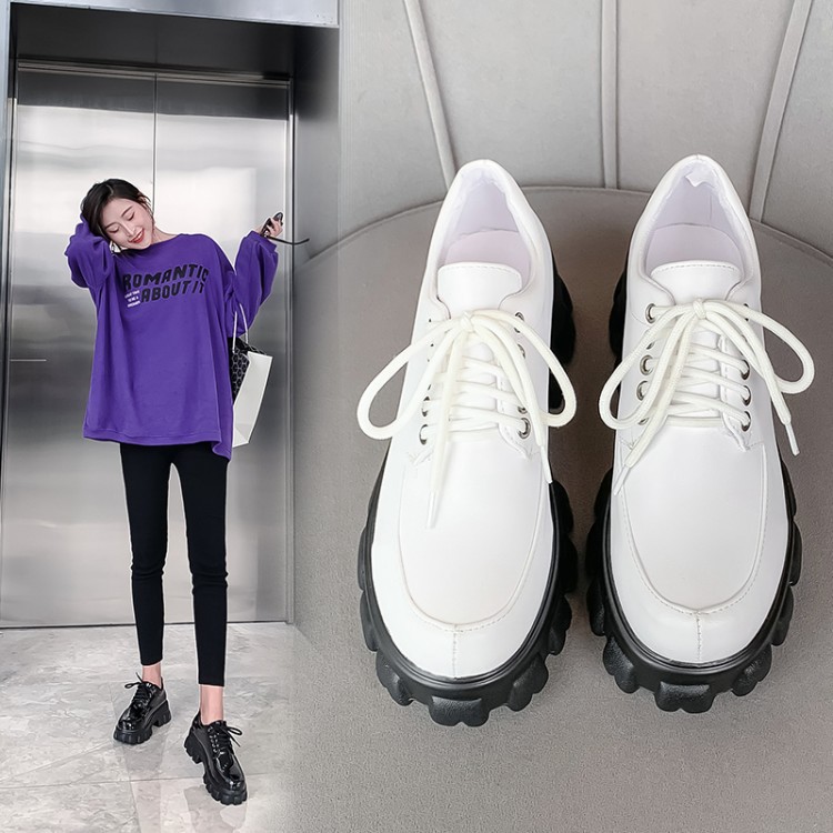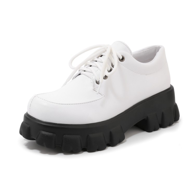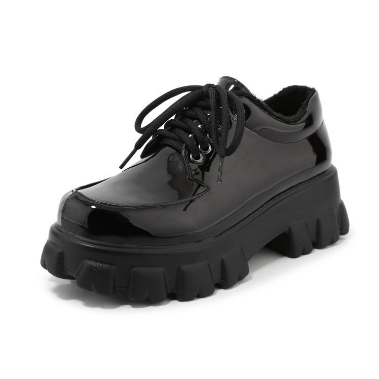 페이턴트 가죽 플랫폼 신발 여성용 두꺼운 바닥 신발 싱글 신발 여성용 소형 가죽 신발 봄과 여름 새로운 유럽 및 미국 흰색 크기 전면 레이스