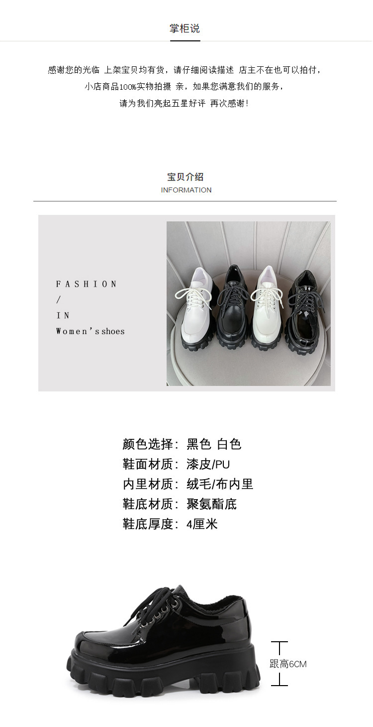 페이턴트 가죽 플랫폼 신발 여성용 두꺼운 바닥 신발 싱글 신발 여성용 소형 가죽 신발 봄과 여름 새로운 유럽 및 미국 흰색 크기 전면 레이스스토어 가기