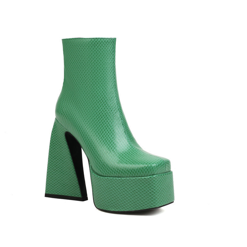 여성용 쇼트 부츠 웨스턴 카우보이 부츠 가을과 겨울 스퀘어 토 두꺼운 굽 슈퍼 하이힐 사이드 지퍼 플랫폼 앵클 부츠 마틴 부츠스토어 가기