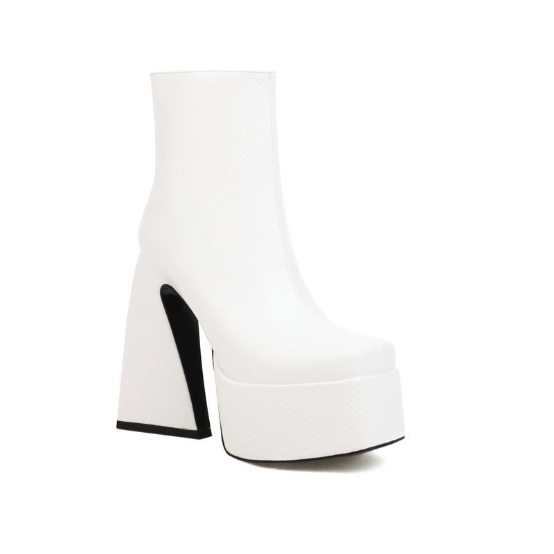 여성용 쇼트 부츠 웨스턴 카우보이 부츠 가을과 겨울 스퀘어 토 두꺼운 굽 슈퍼 하이힐 사이드 지퍼 플랫폼 앵클 부츠 마틴 부츠