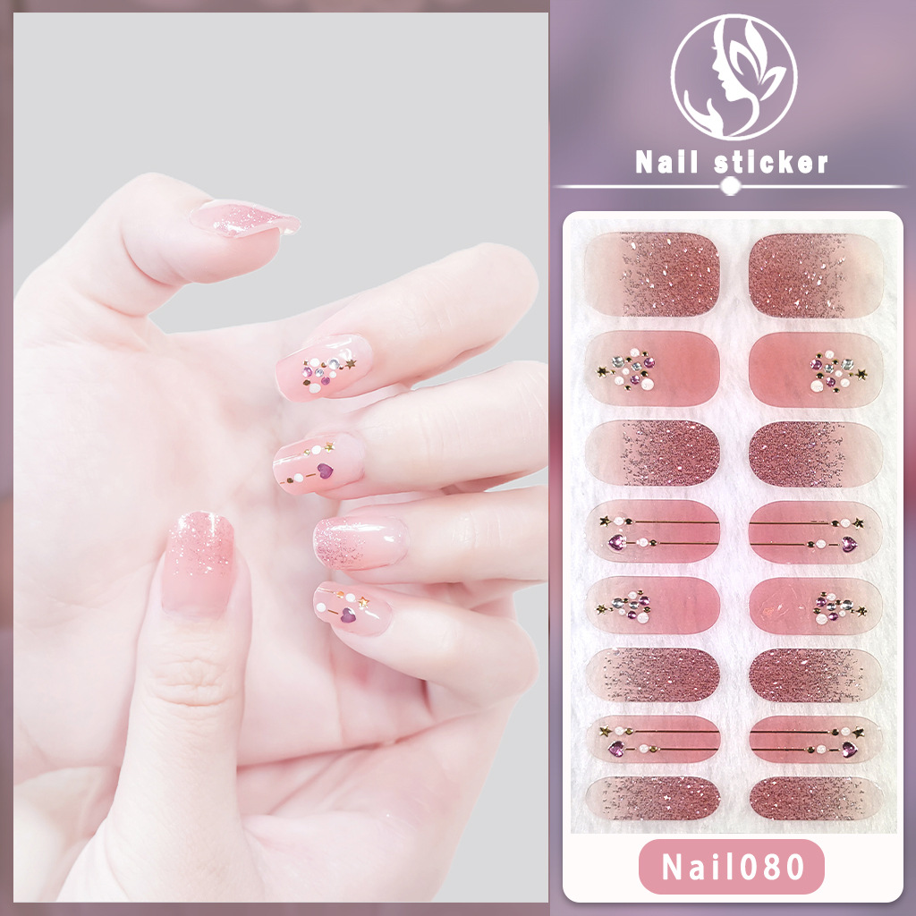 16 손가락 베이킹 무료 젤 입체 도금 네일 스티커 풀 스틱 내구성 방수 매니큐어 필름 네일 스티커스토어 가기