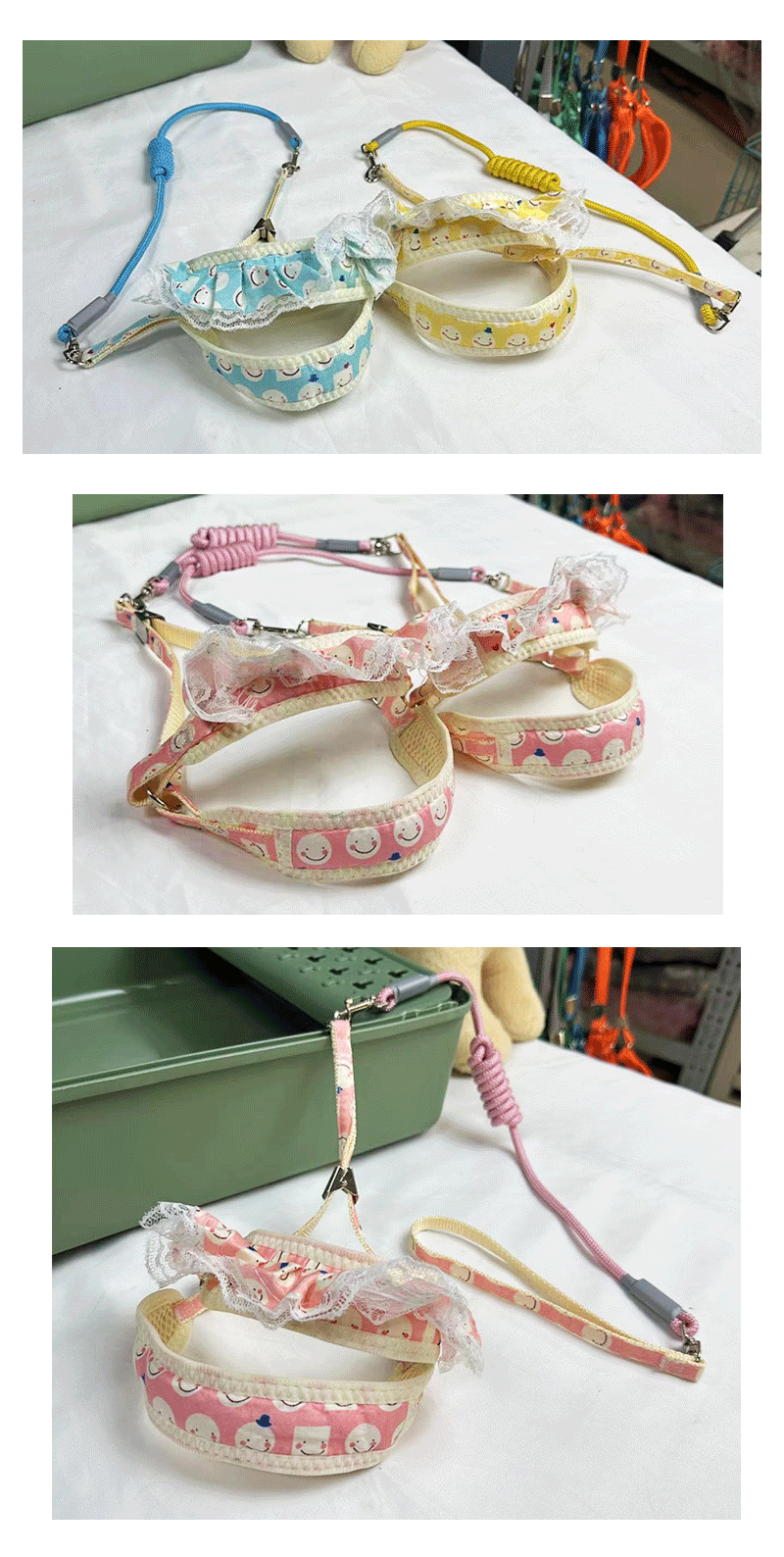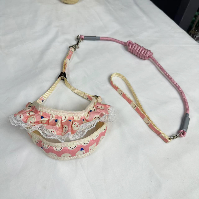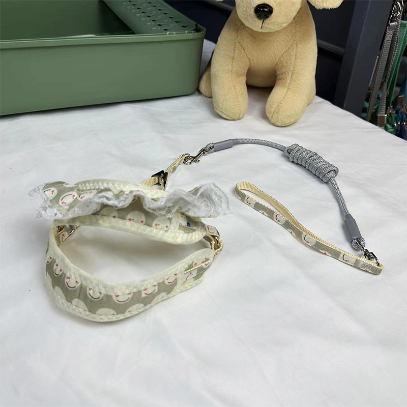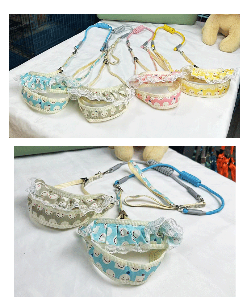 애완 동물 레이스 가장자리 안티 카드 머리 유방 보호 가죽 끈 개 작은 개 테디 베어 시라리 가슴 스트랩스토어 가기