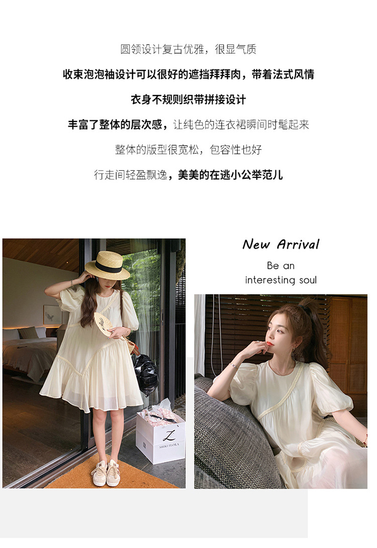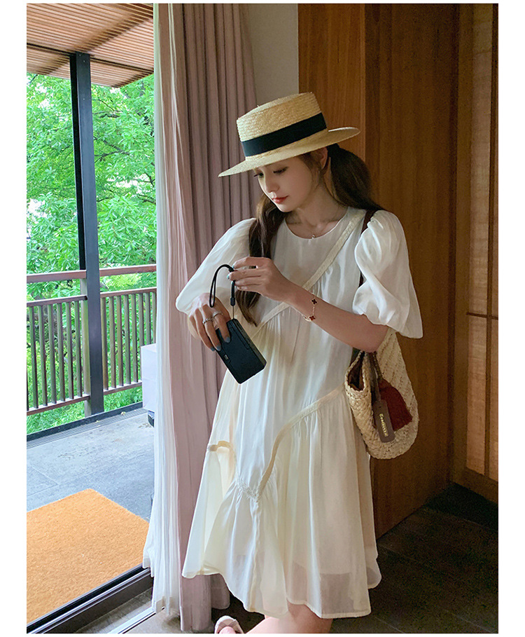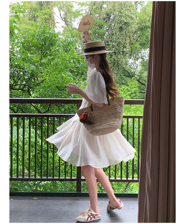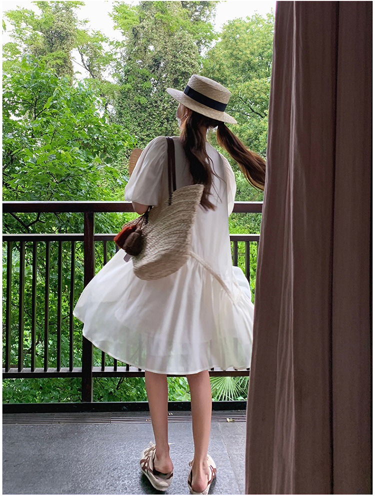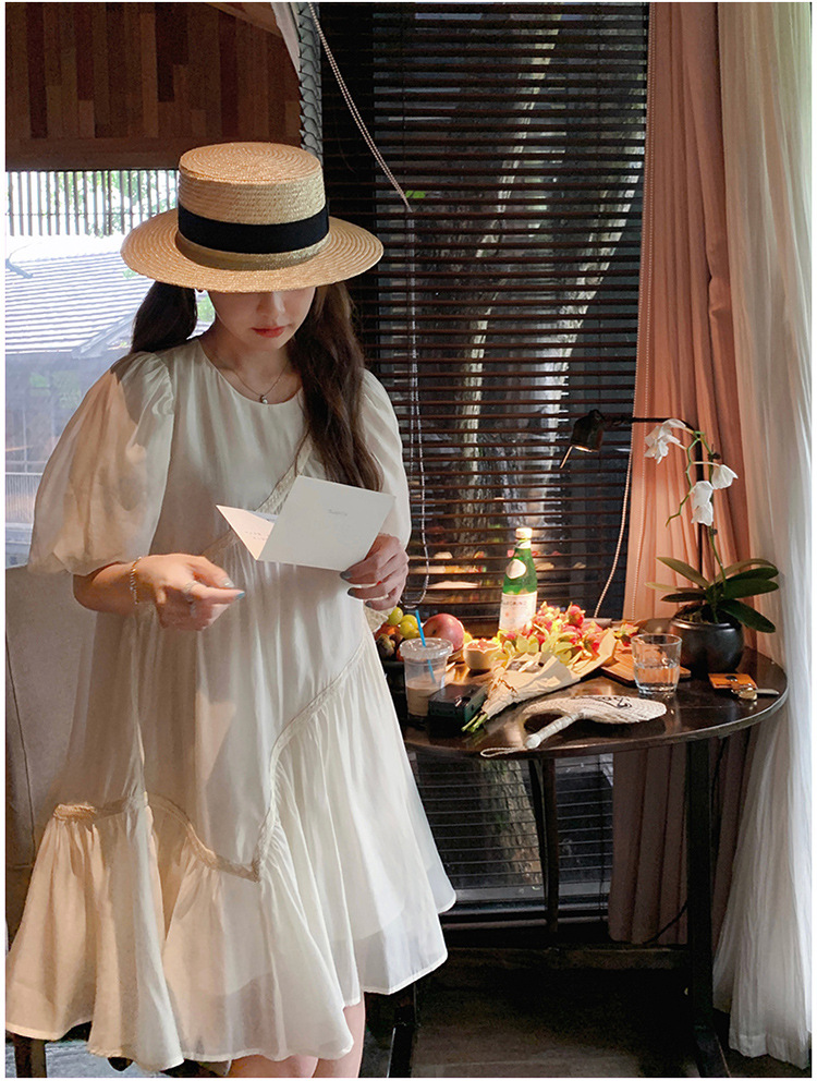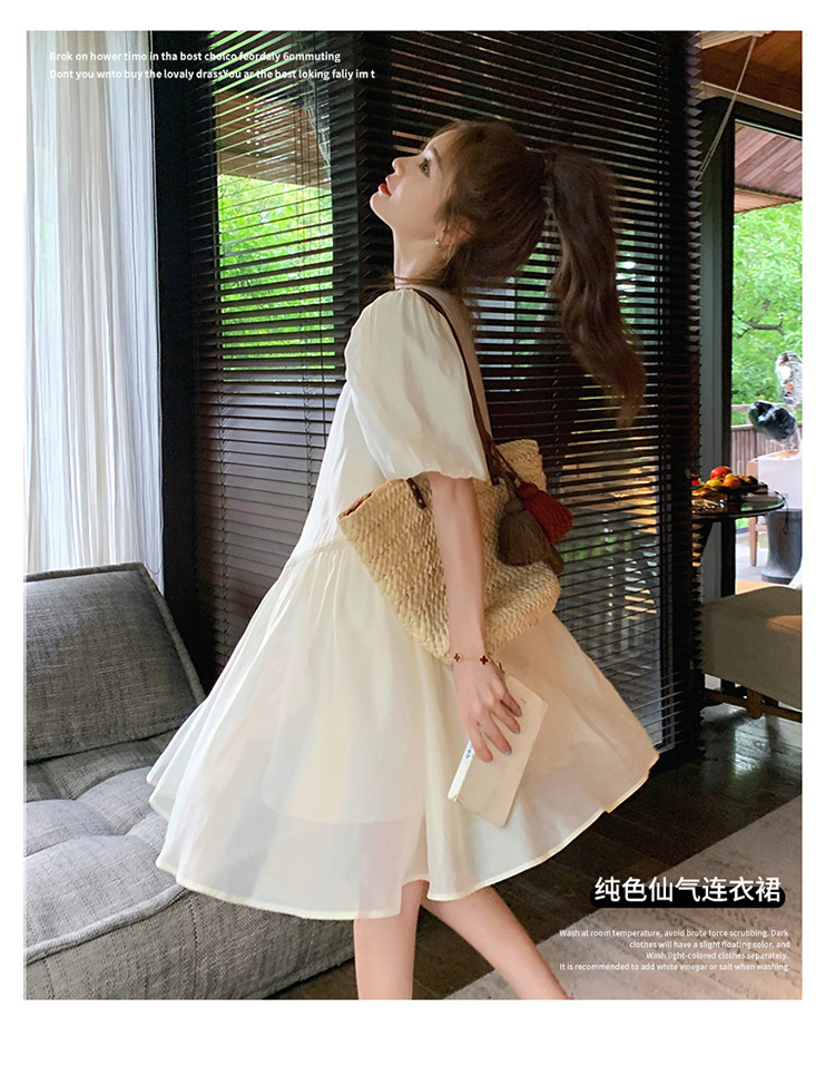 프랑스 스타일 아이보리 Platycodon 원피스 여자의 2023 여름 새로운 달콤한 나이 감소 느슨한 퍼프 슬리브 공주 치마스토어 가기