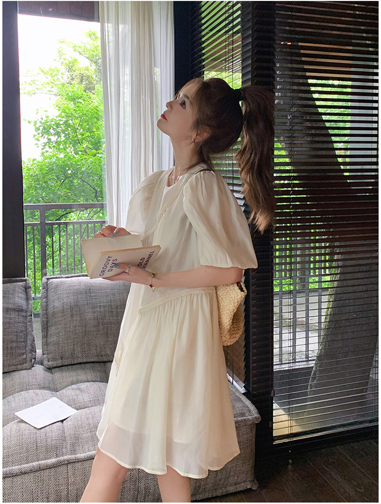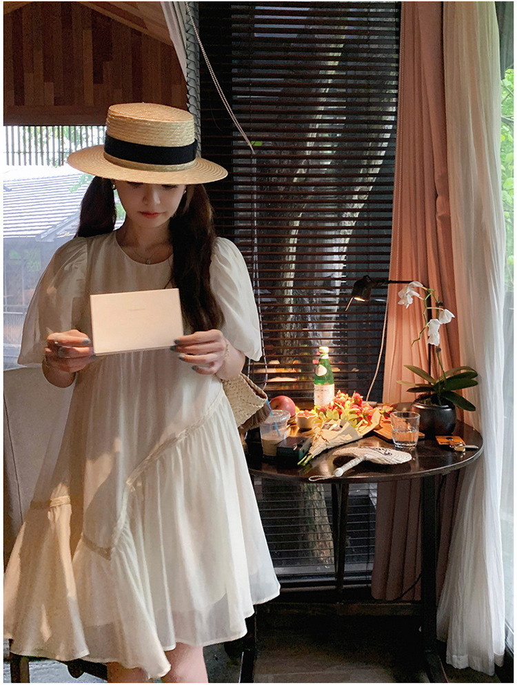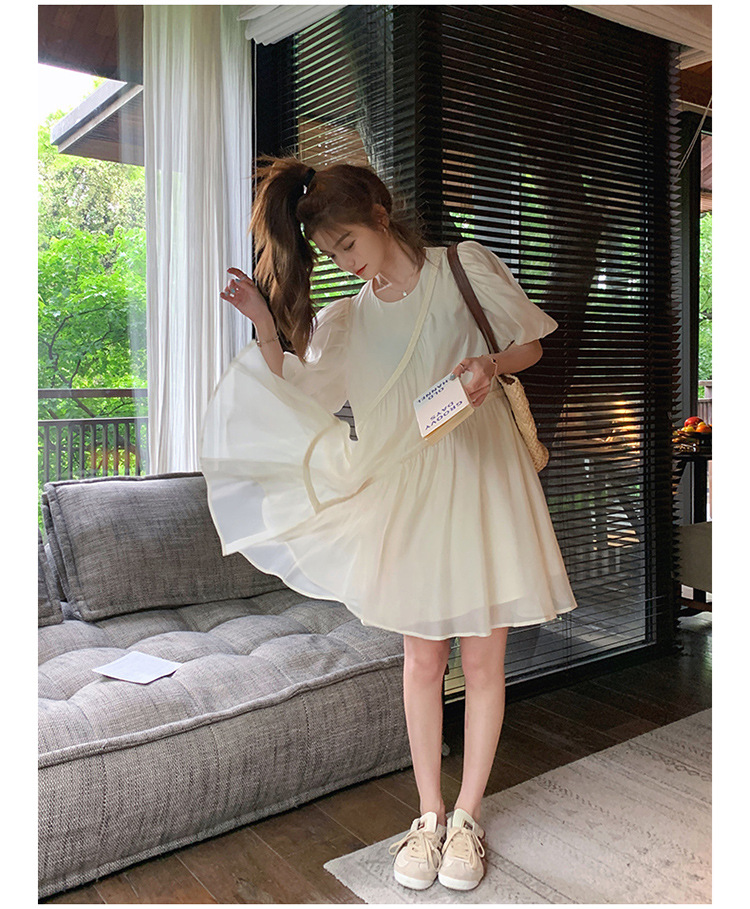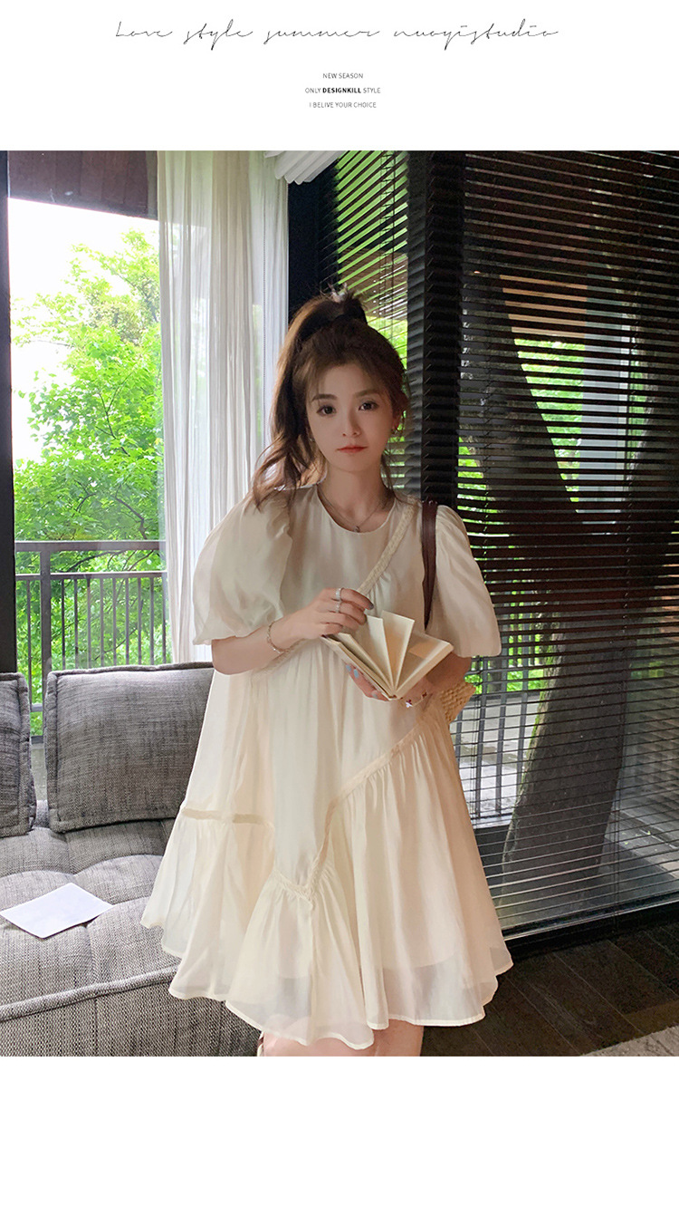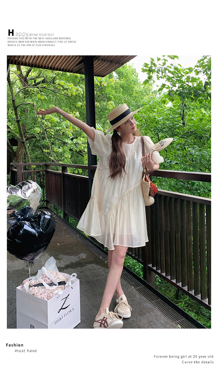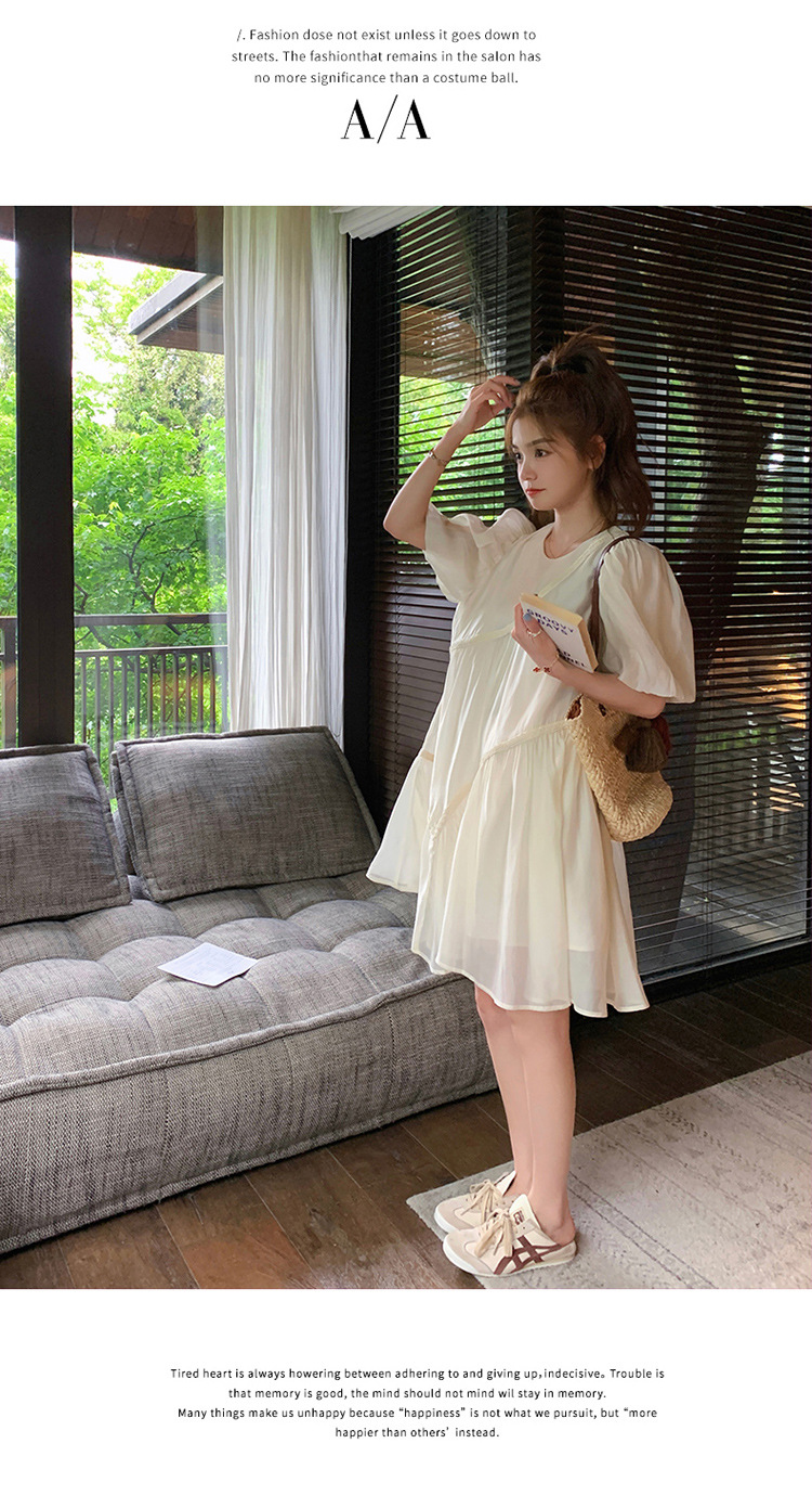 프랑스 스타일 아이보리 Platycodon 원피스 여자의 2023 여름 새로운 달콤한 나이 감소 느슨한 퍼프 슬리브 공주 치마스토어 가기