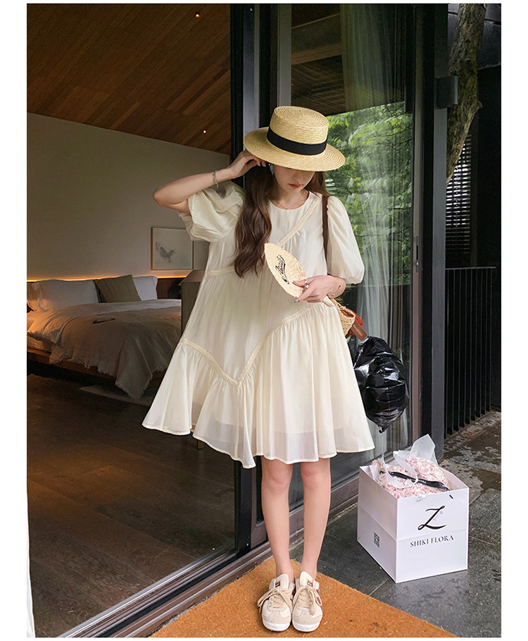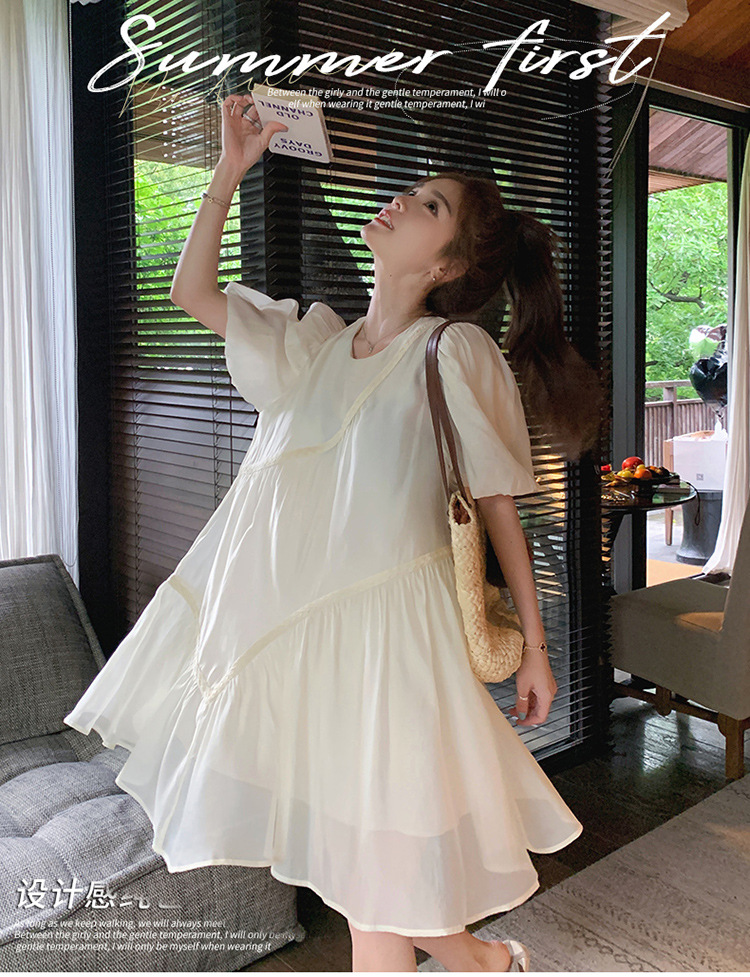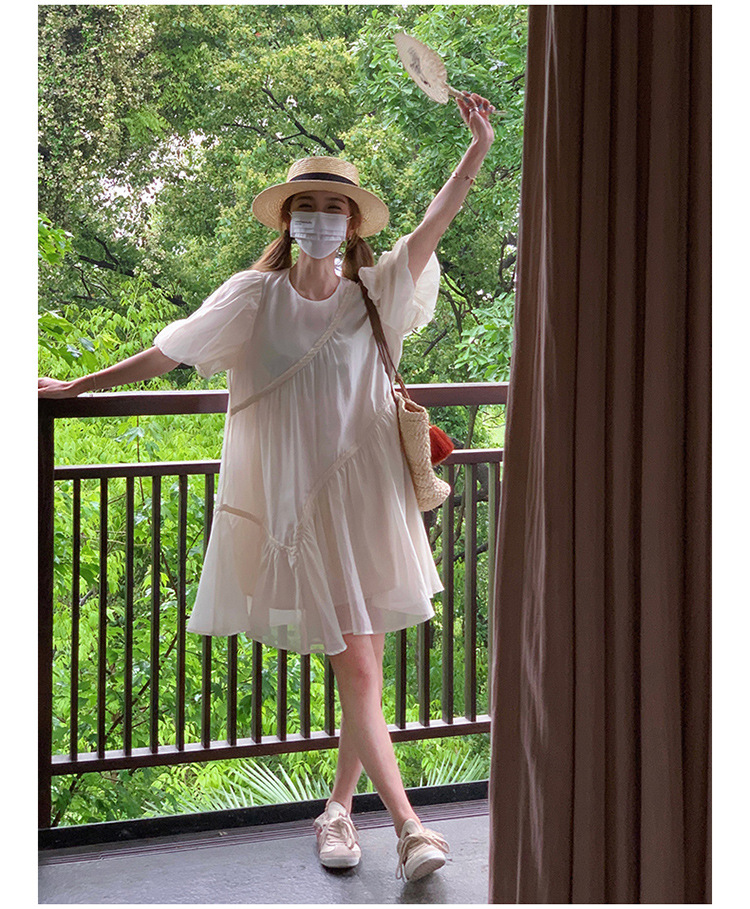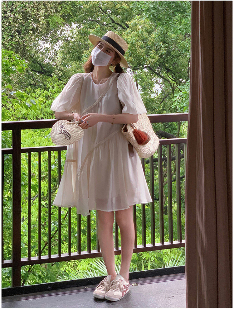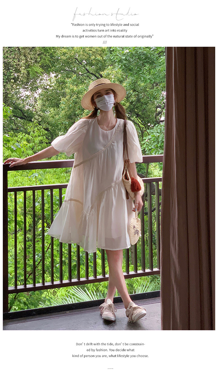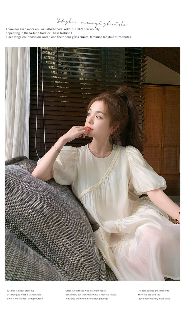 프랑스 스타일 아이보리 Platycodon 원피스 여자의 2023 여름 새로운 달콤한 나이 감소 느슨한 퍼프 슬리브 공주 치마스토어 가기
