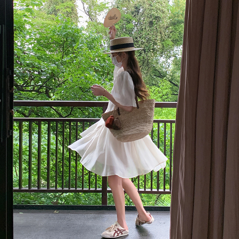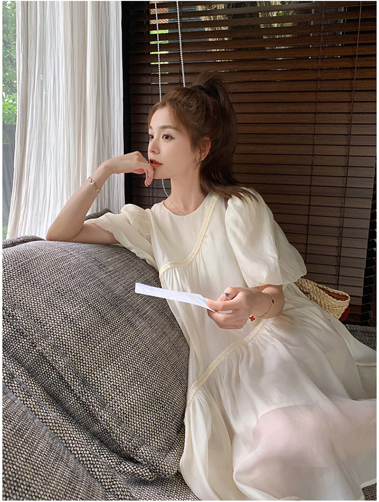 프랑스 스타일 아이보리 Platycodon 원피스 여자의 2023 여름 새로운 달콤한 나이 감소 느슨한 퍼프 슬리브 공주 치마