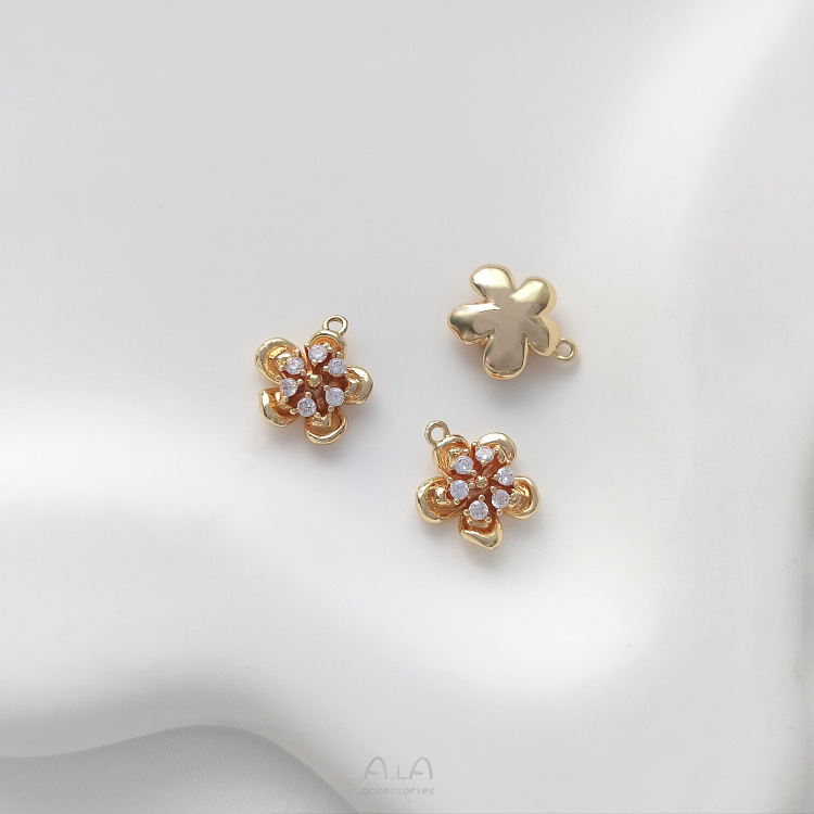 가지와 나뭇잎 14K 골드 컬러 지르콘 꽃 장미 펜던트 수제 귀걸이 목걸이 팔찌 DIY 보석 펜던트