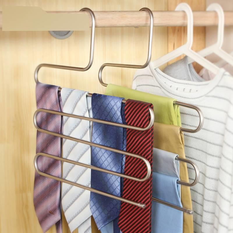 스테인레스 S 자형 바지 랙 건조대 다기능 3 차원 다층 수납 바지 랙 옷걸이 접이식 수납 랙