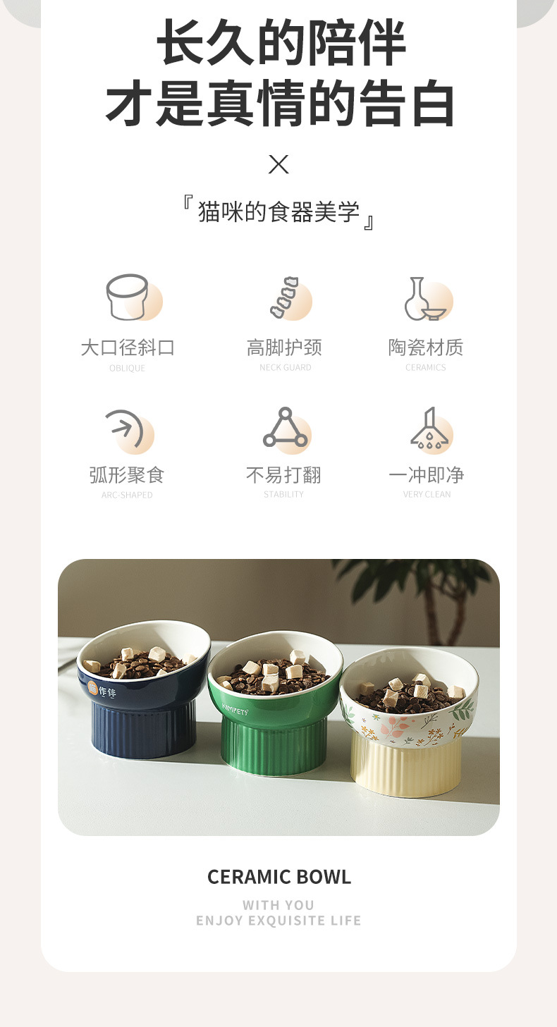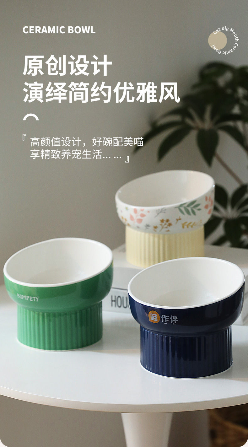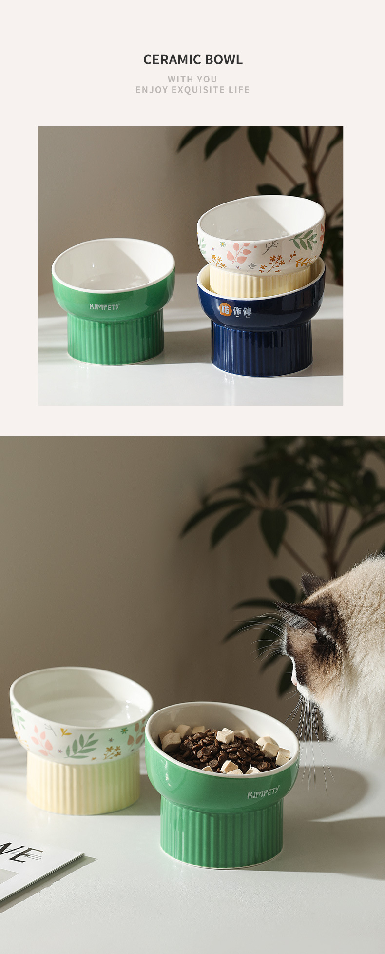 애완 동물 세라믹 고양이 그릇 심플 키 큰 개 그릇 고양이 그릇 고양이 그릇 비스듬한 목 보호 노크 방지 애완 동물 사료 도매스토어 가기