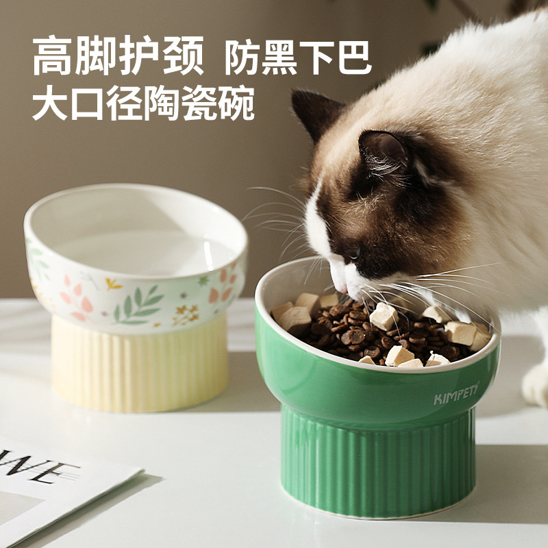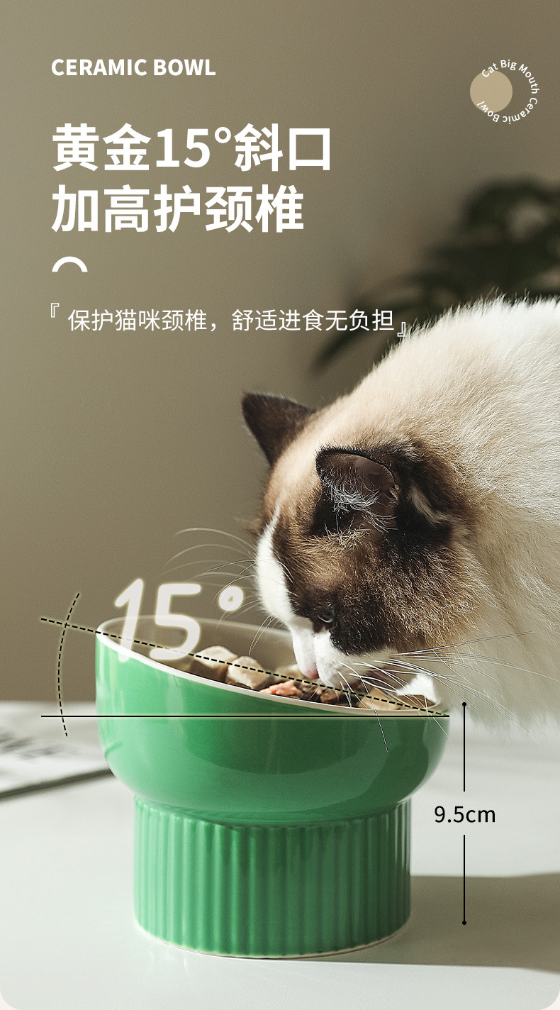 애완 동물 세라믹 고양이 그릇 심플 키 큰 개 그릇 고양이 그릇 고양이 그릇 비스듬한 목 보호 노크 방지 애완 동물 사료 도매