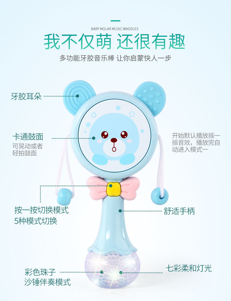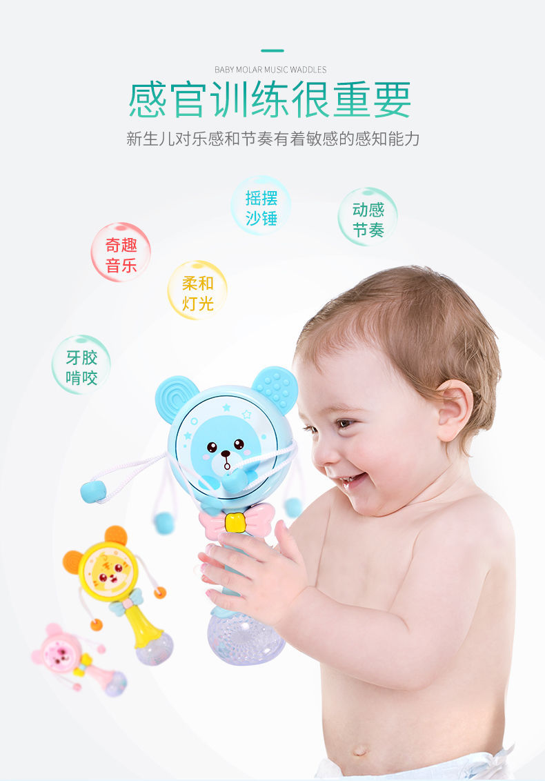 아기 딸랑이는 씹을 수 있습니다 3-6 3 개월 신생아 아기 핸드 드럼 음악 스틱 딸랑이 장난감 0-1 세