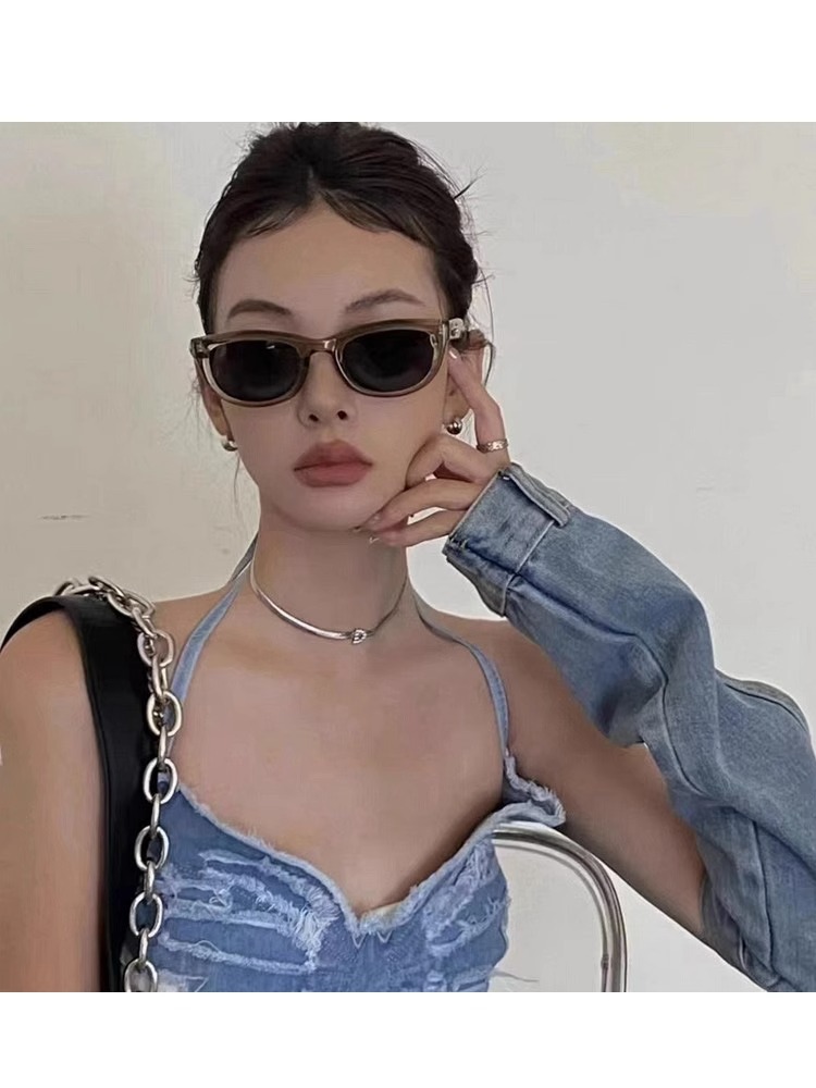 올리브 그린 고양이 눈 선글라스 여성 슬리밍 일반 오목 모양 양산 거리 사진 선글라스 New G 홈 소형 레드 북 조수