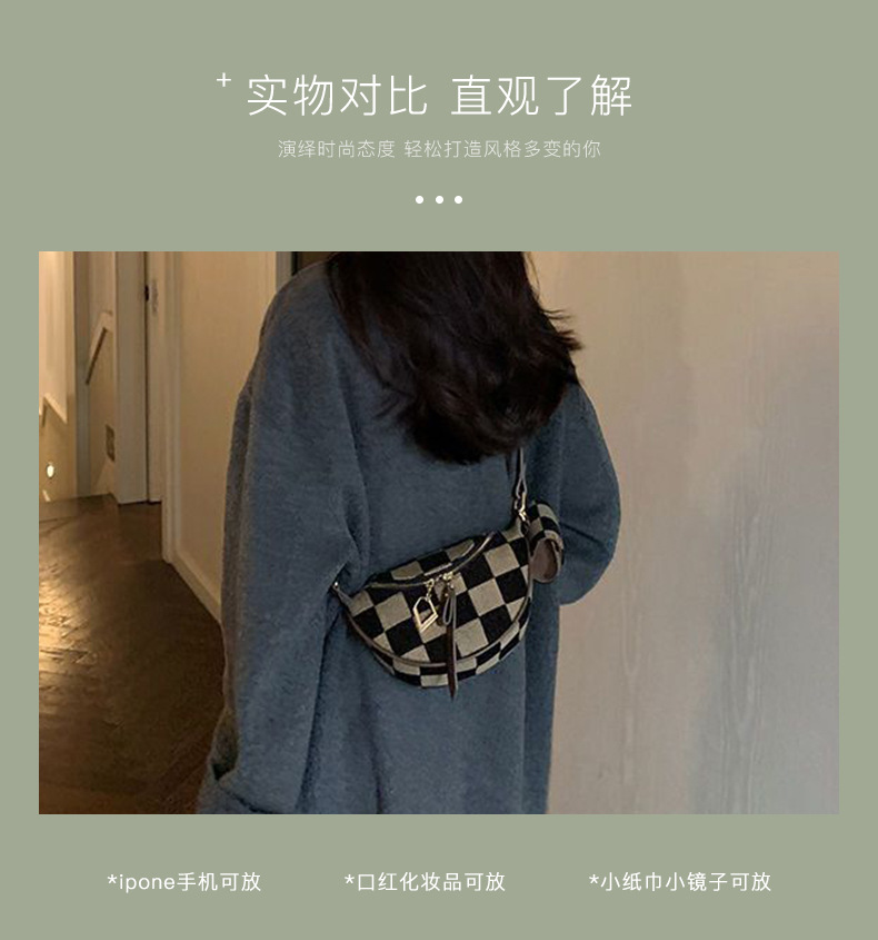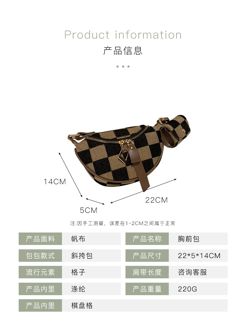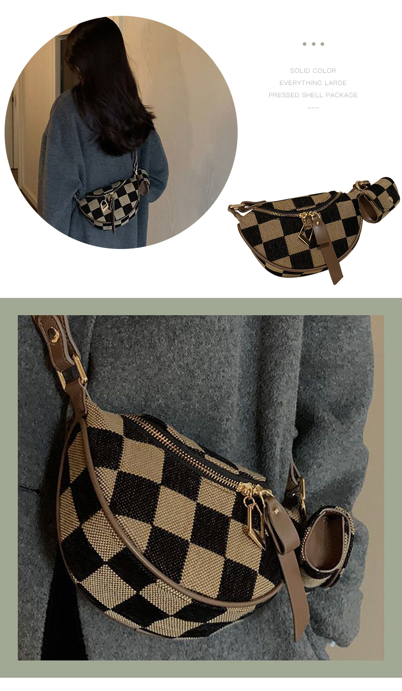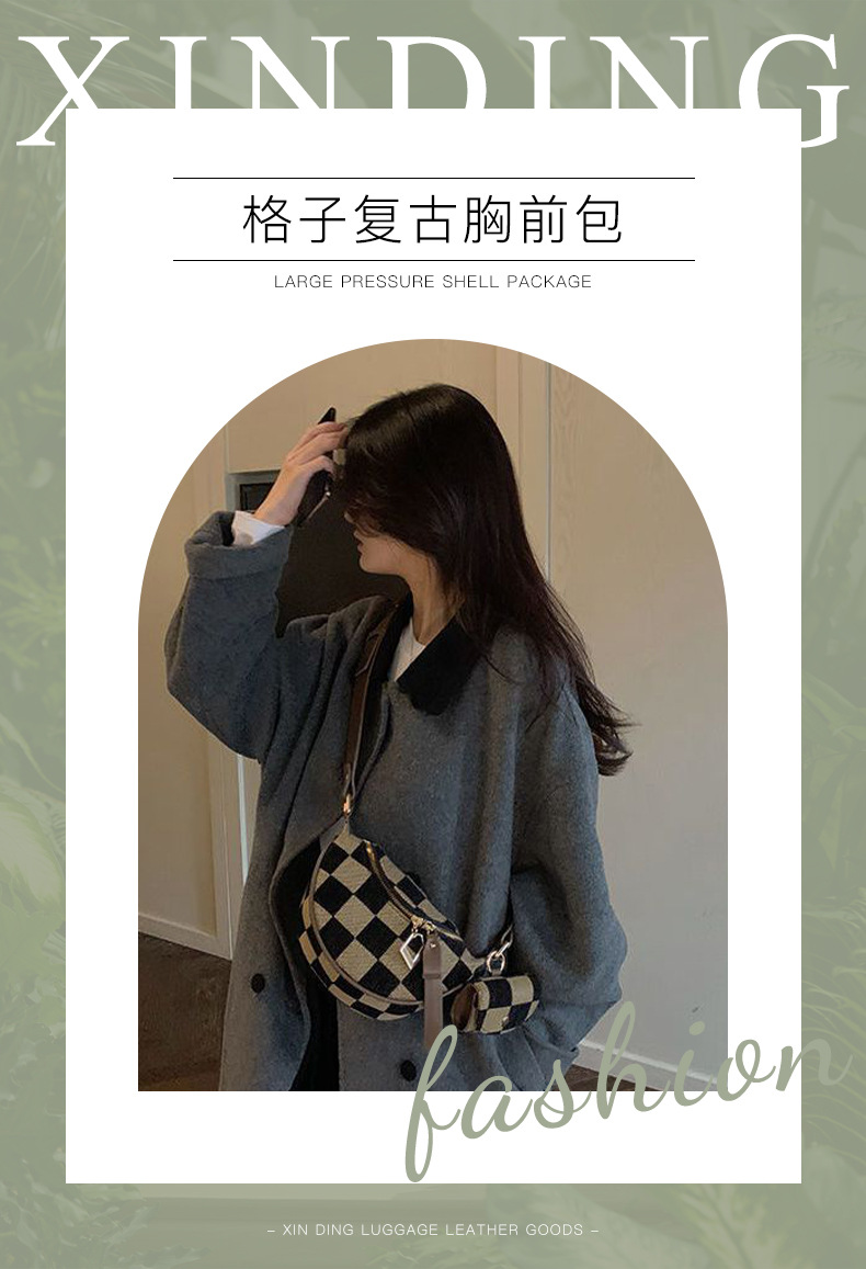 새로운 크로스바디 캐주얼 만능 가슴 가방 심플 경량 패션 틈새 디자인 트렌디 피스 체크 보드 가슴 가방스토어 가기