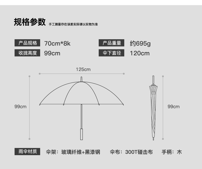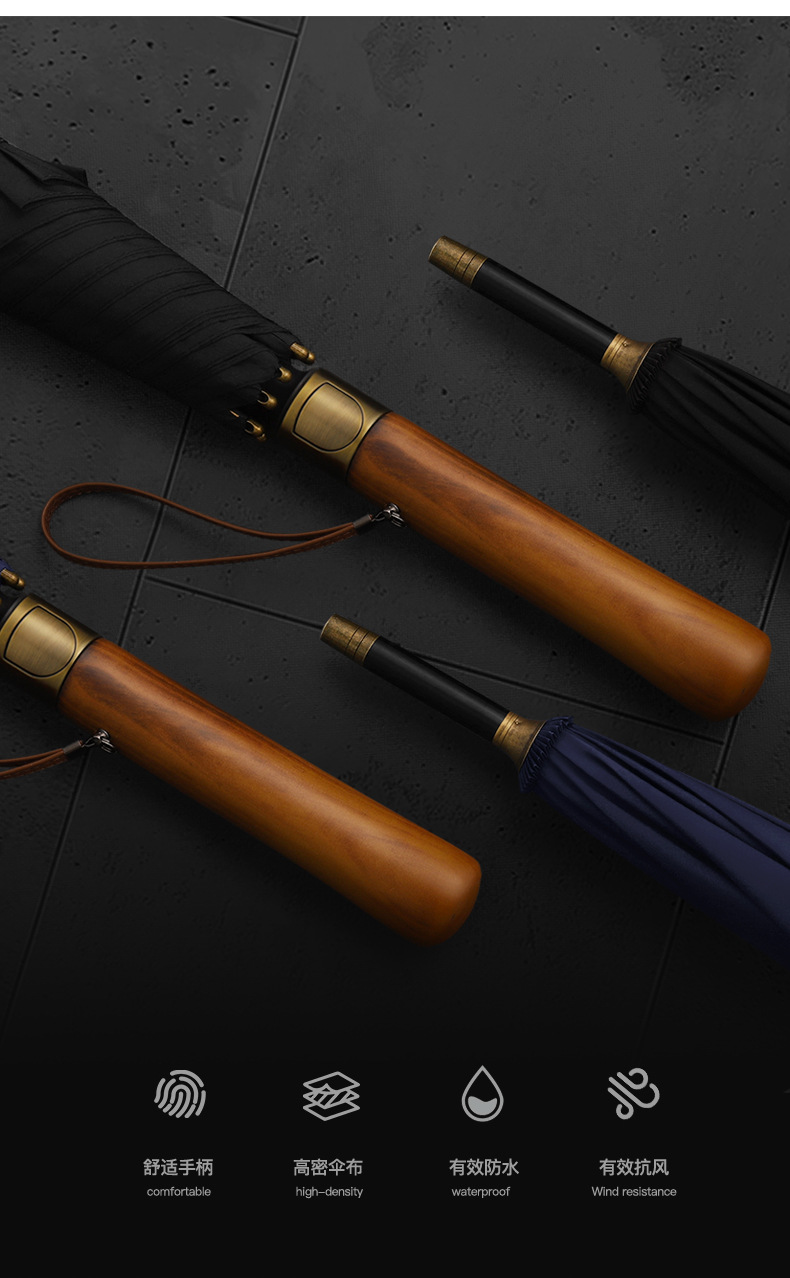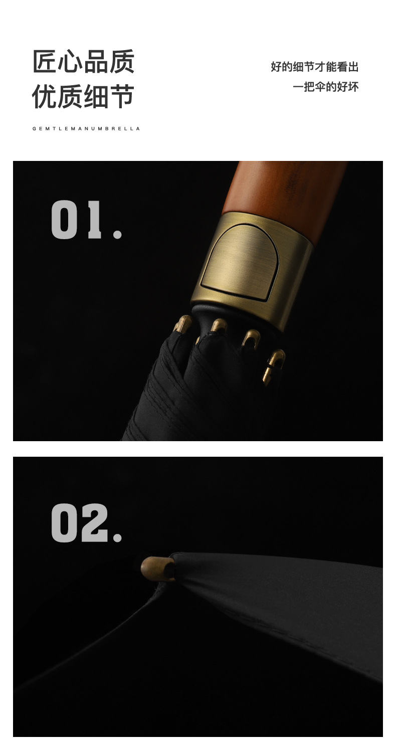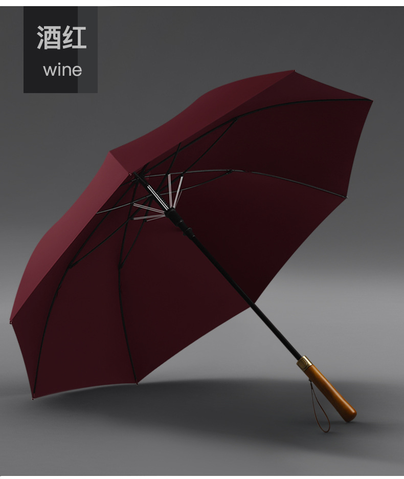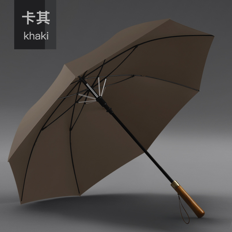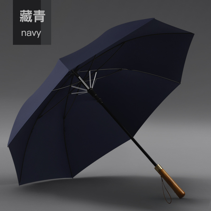 8 본 긴 손잡이 우산 빈티지 나무 손잡이 남성용 대형 이중 폭풍우 우산 강화 강한 바람 방지 직선 막대 써니 우산스토어 가기