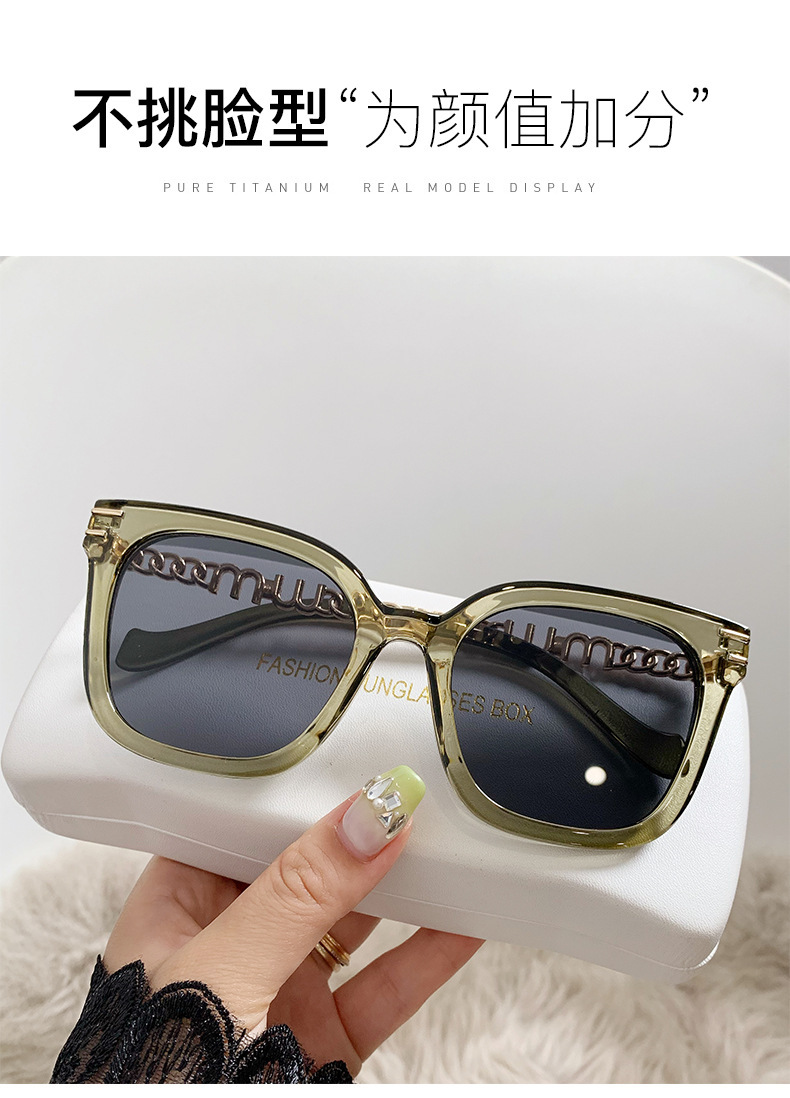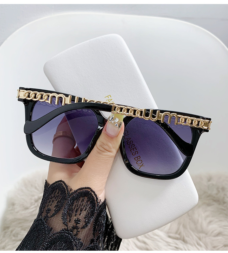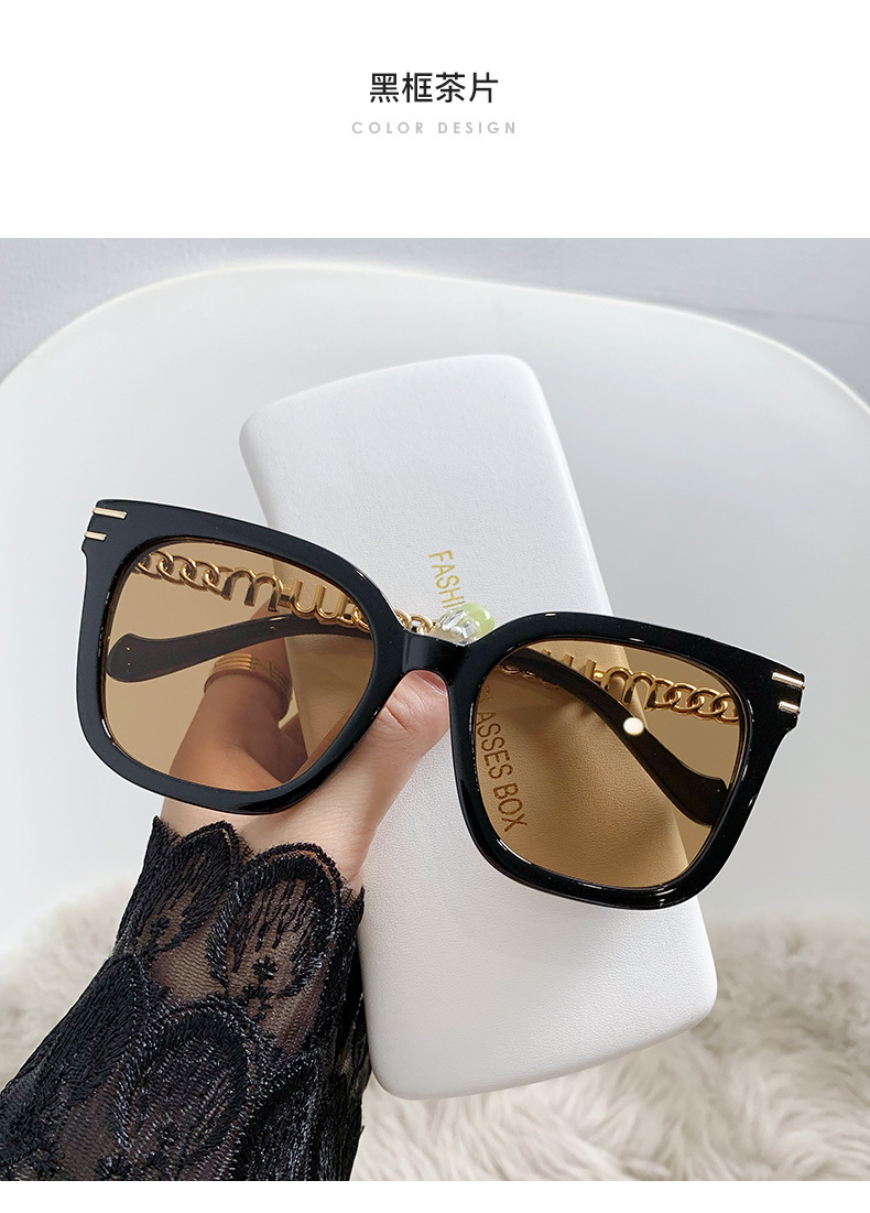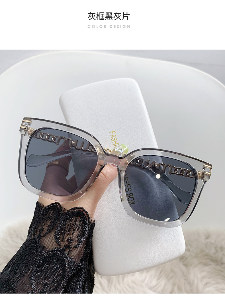 时尚网红潮款女士太阳镜大框方形高级防晒墨镜新款洋气金属链条腿