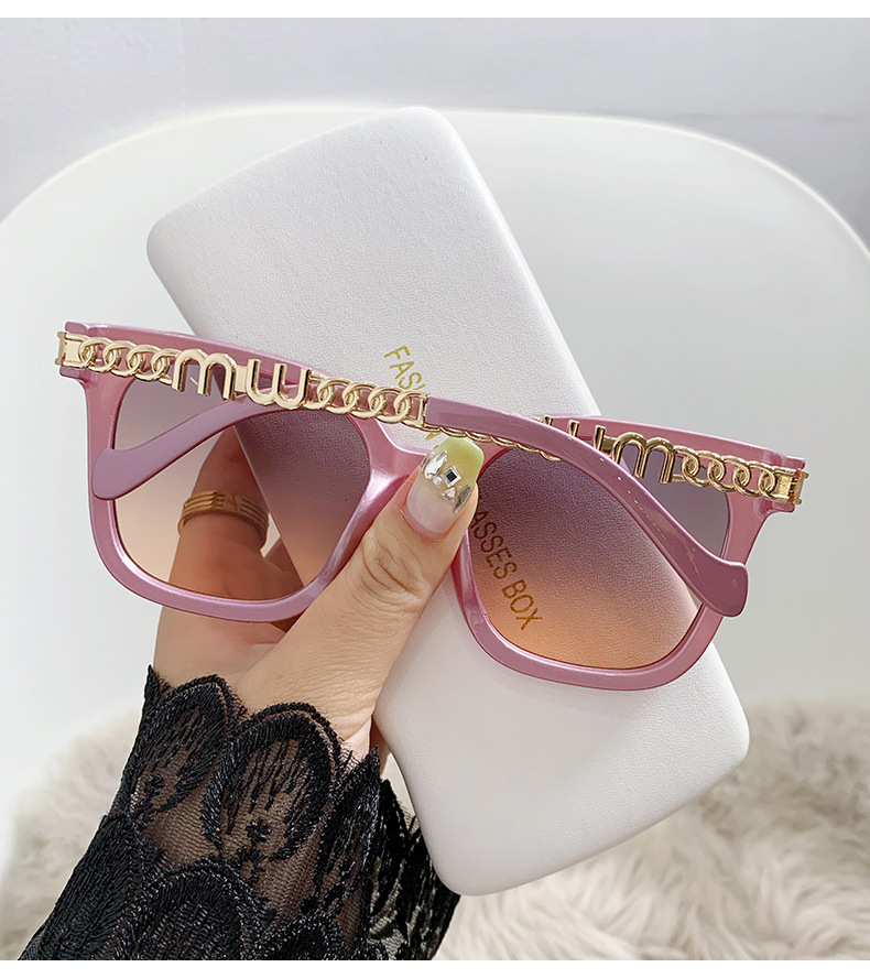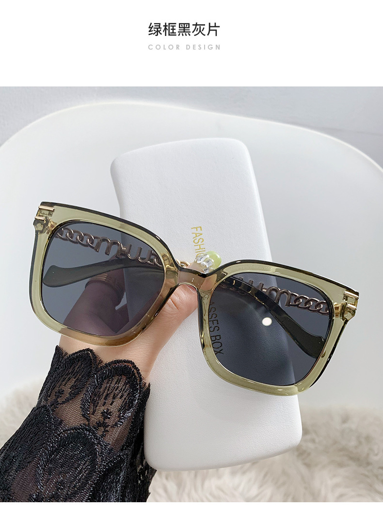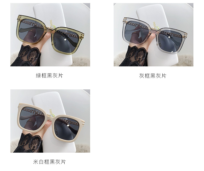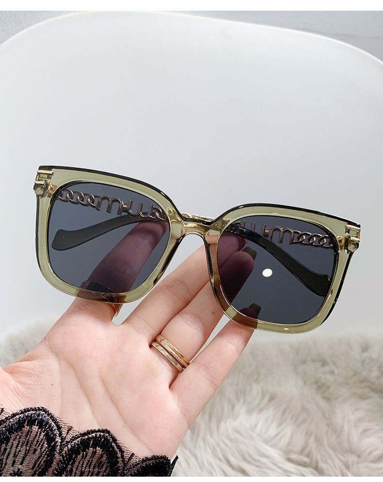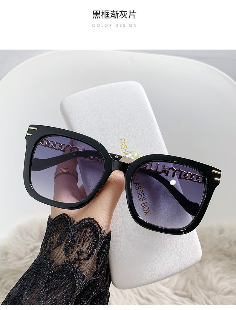时尚网红潮款女士太阳镜大框方形高级防晒墨镜新款洋气金属链条腿