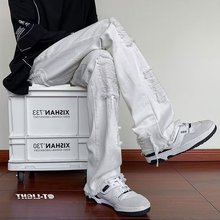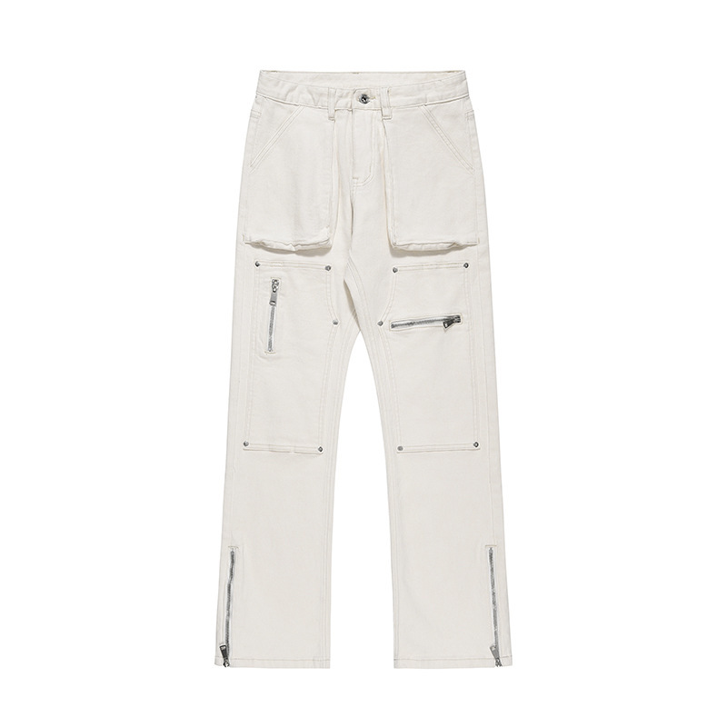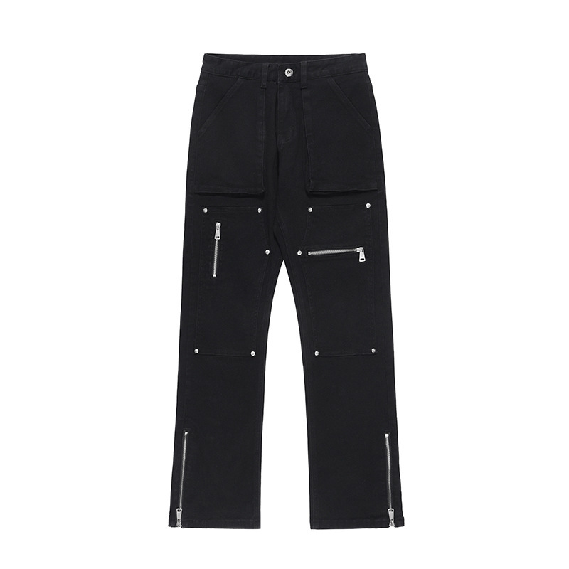2023 새로운 미국 하이 스트리트 청소년 비즈니스 중간 허리 단색 캐주얼 바지 소년 지퍼 캐주얼 바지스토어 가기
