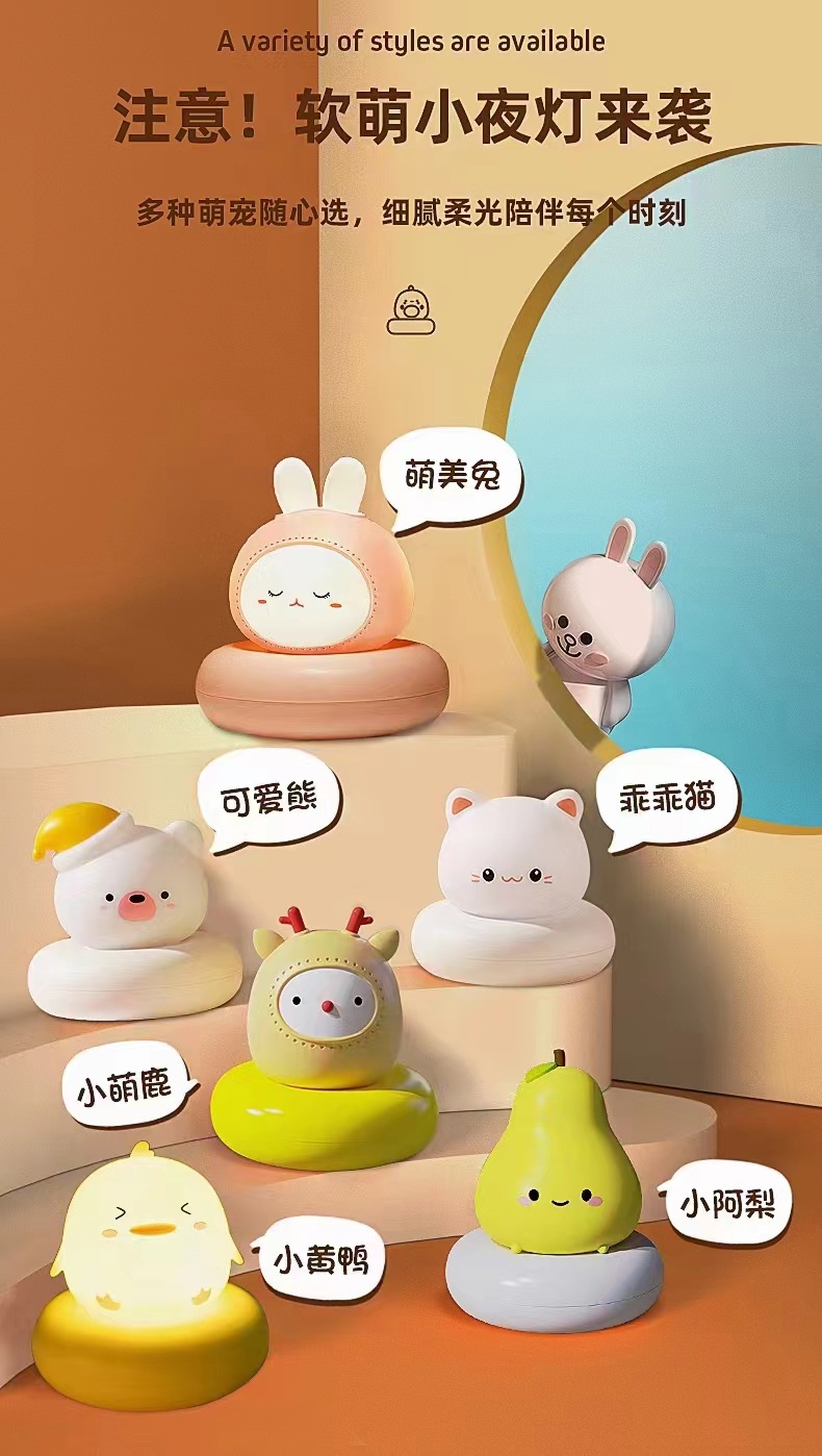 침실 아기 수유 침대 옆 램프 어린이 수면 동반 만화 캐릭터 충전식 음성 제어 야간등 만화 야간등