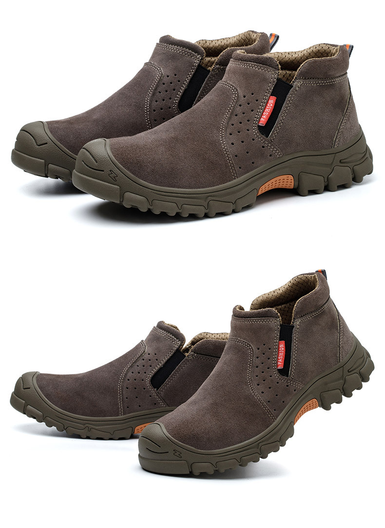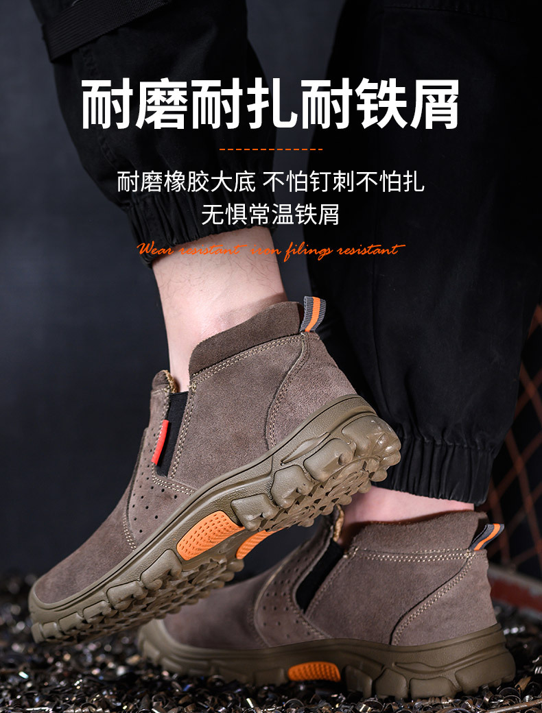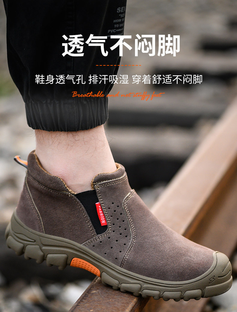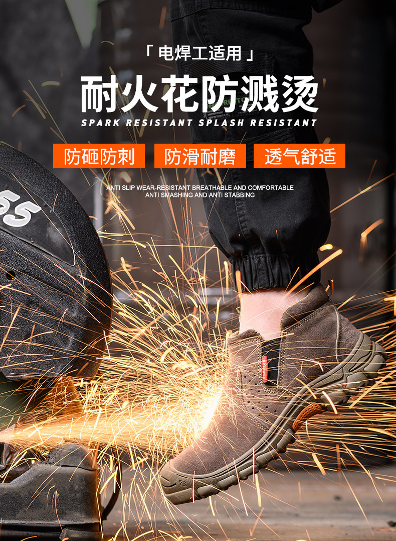 电焊工防护鞋 反绒牛皮耐高温工作鞋 夏季款透气男士一脚蹬劳保鞋