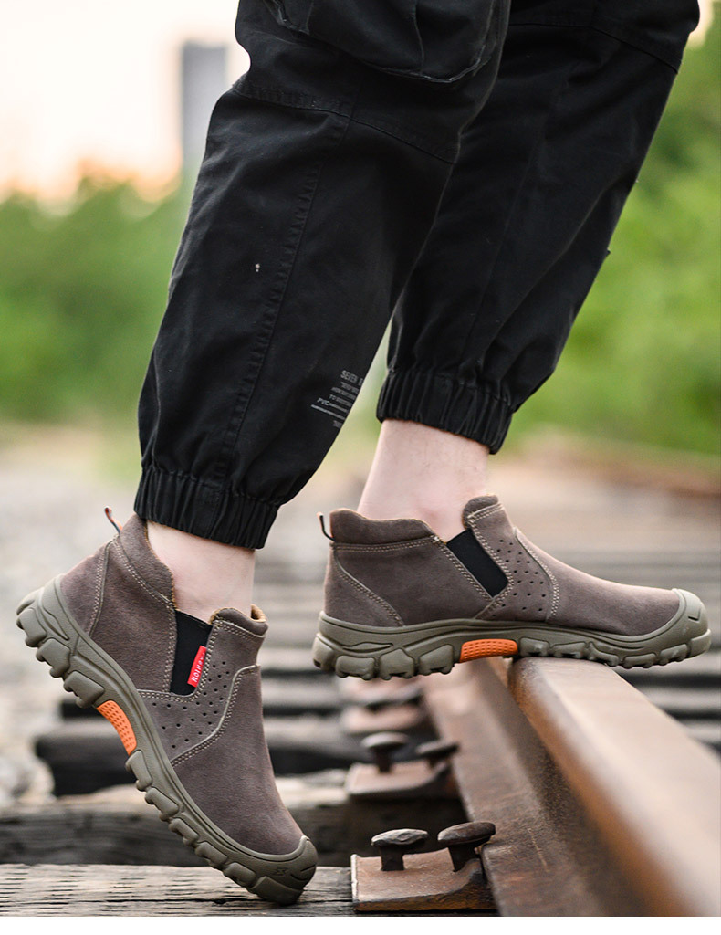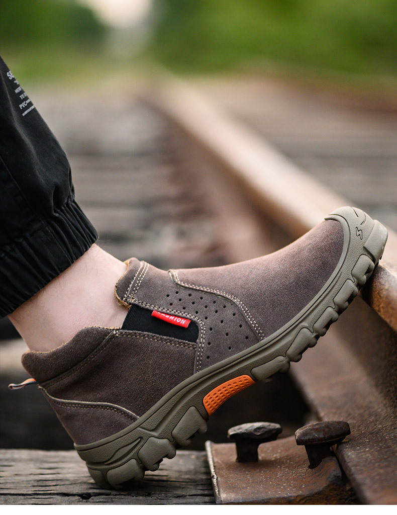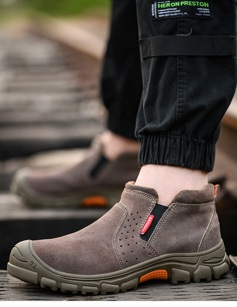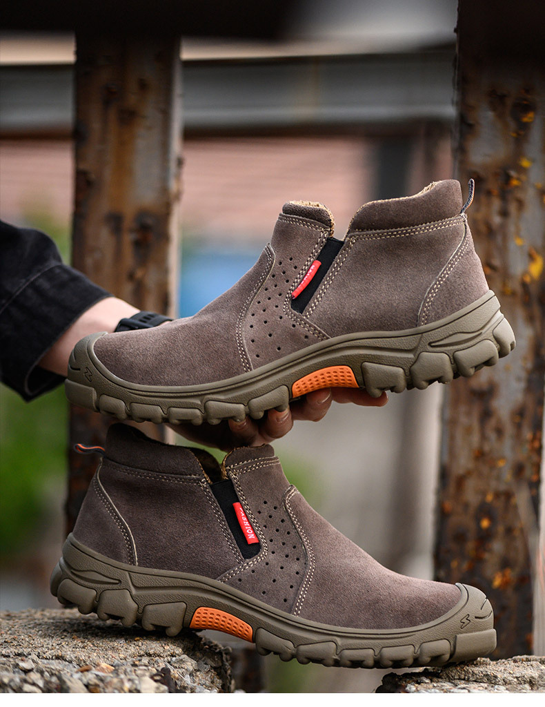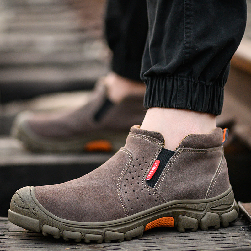 电焊工防护鞋 反绒牛皮耐高温工作鞋 夏季款透气男士一脚蹬劳保鞋